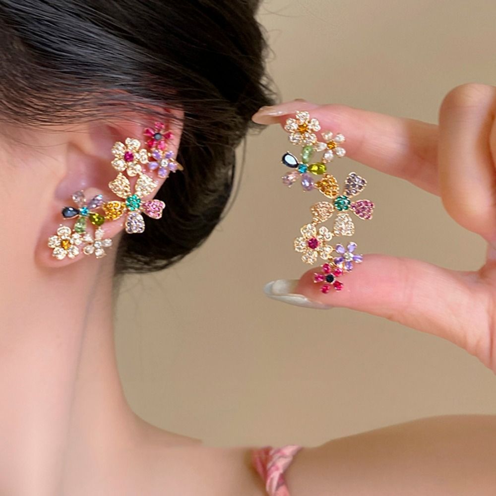 Brincos De Zircão ALLGOODS1 , Flores Estilo Doce De Artesanato Requintado Diamante Completo