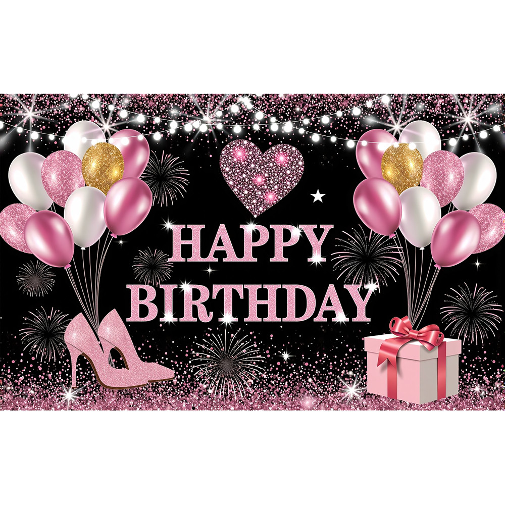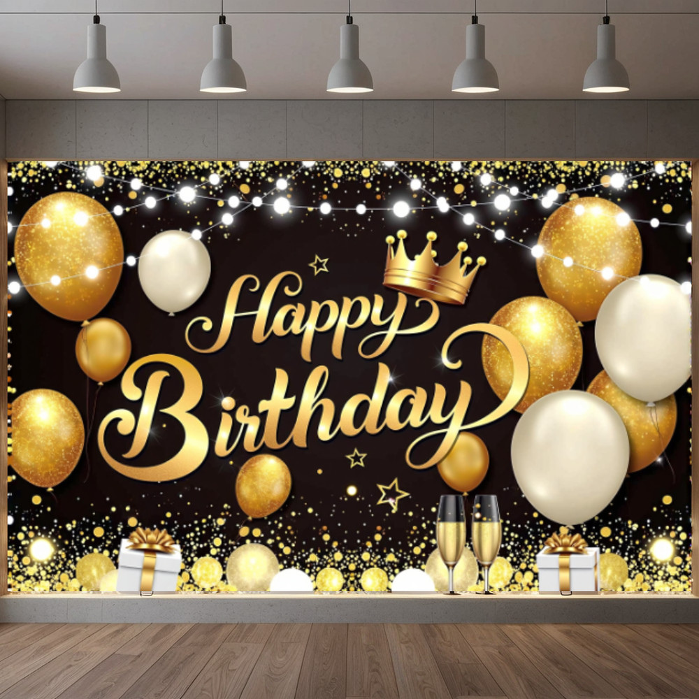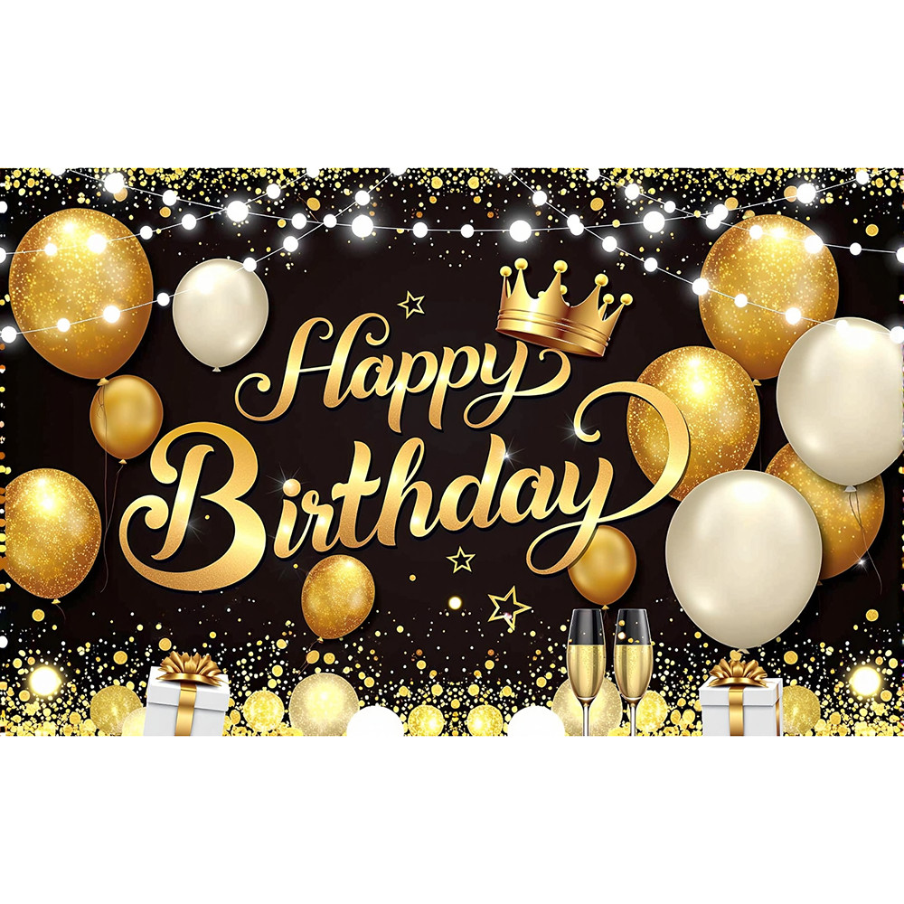 Feliz Aniversário Pano De Fundo Banner Preto Ouro Balões Sinal Cartaz Para Homens Mulheres Decorações De Festa De Fotogr