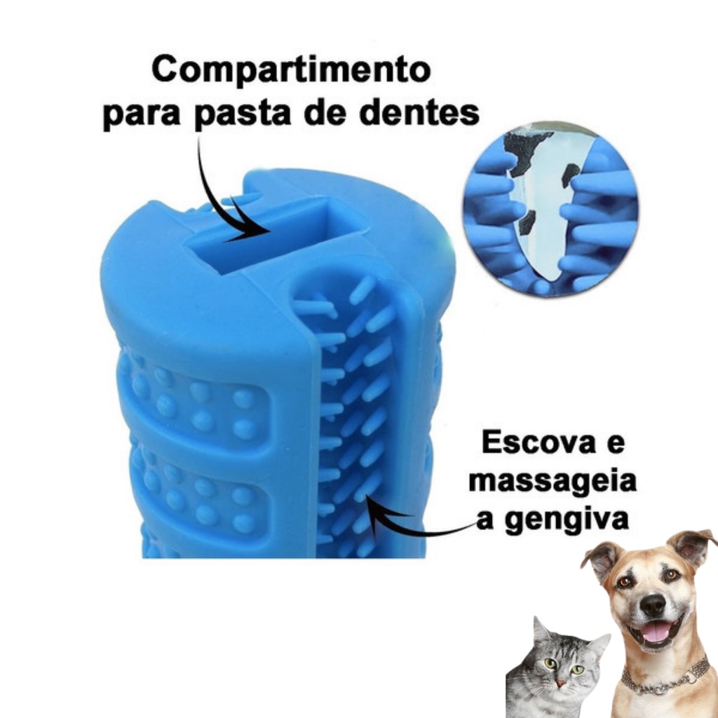 Mordedor Brinquedo Escova De Dente Cachorro Cão Pet Pequeno + Gel Dental Pet