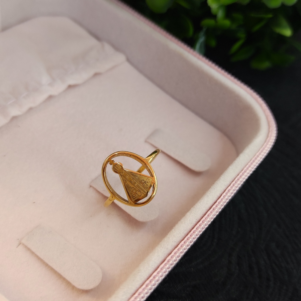 Anel Religioso Nossa Sra. Aparecida Original Rik9 Aço Inox Banhado Anti Alérgico A-111