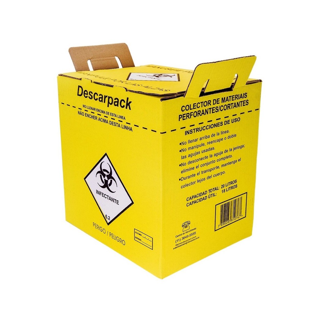 Caixa Coletor Descarpack Perfuro Cortante 7 Litros Uso Odontologico/hospitalar