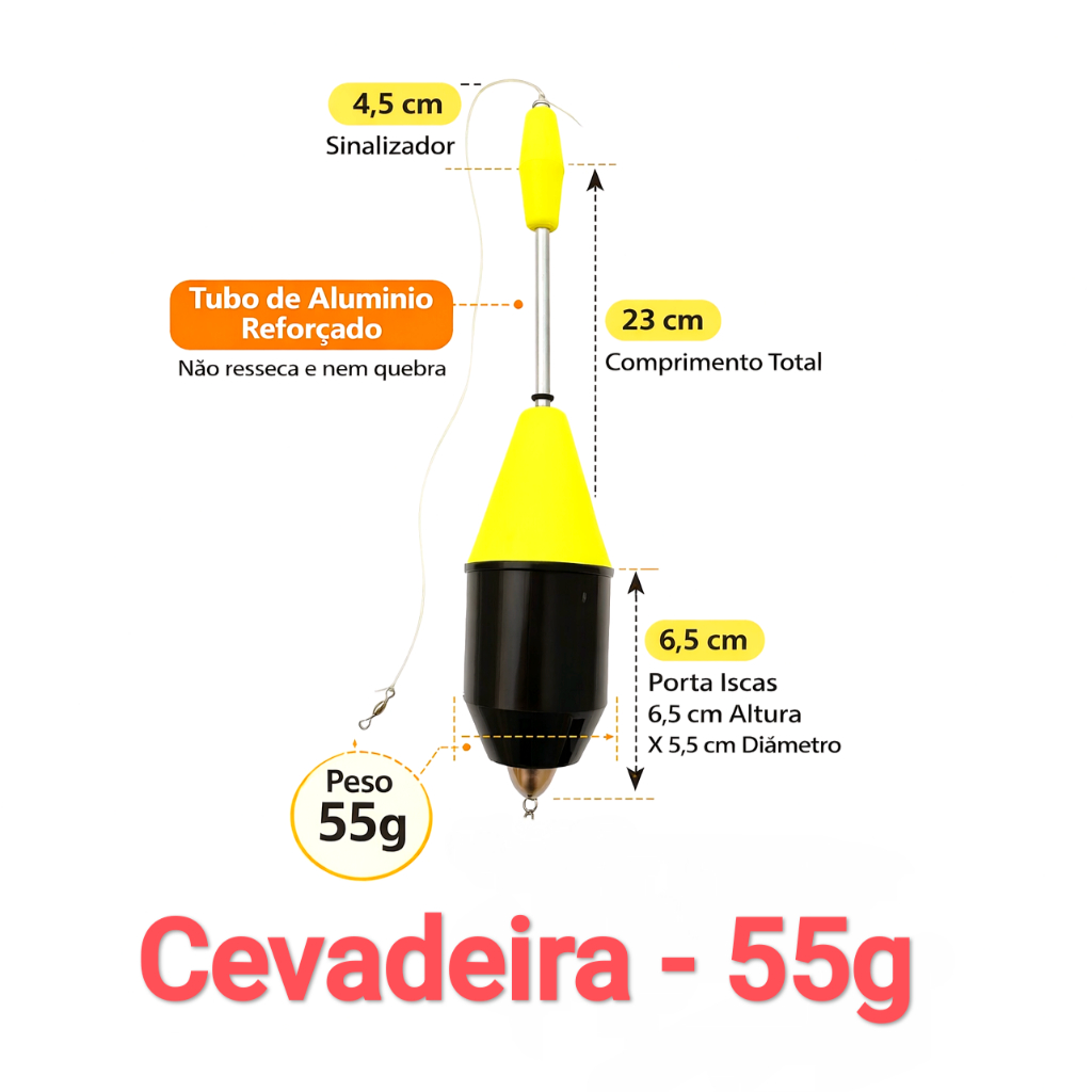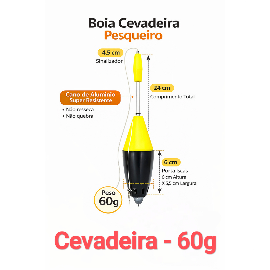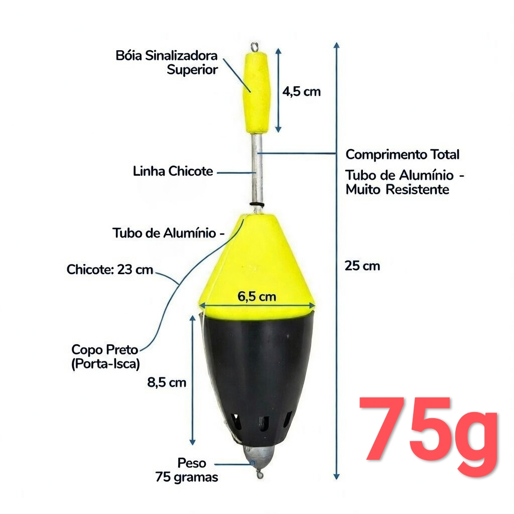 Boia Cevadeira Pesqueiro Pesca Kit Pacu Tamba 35g a 85g Cano Aluminio Arremesso Longo Antena Chicote