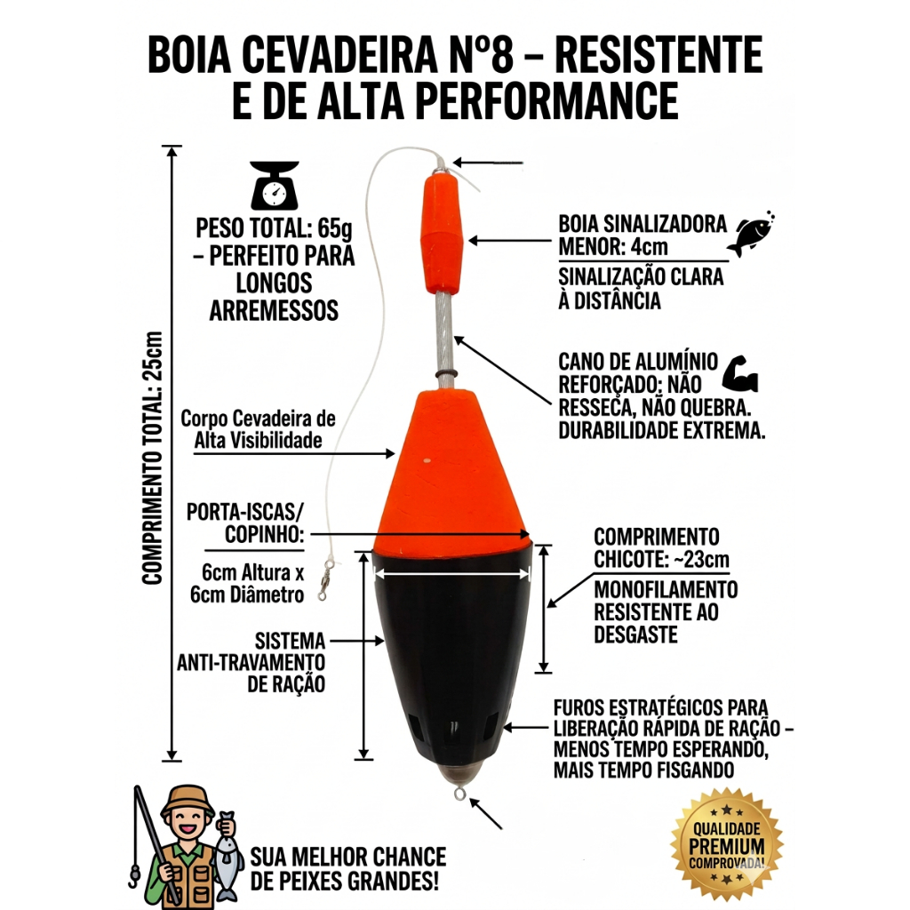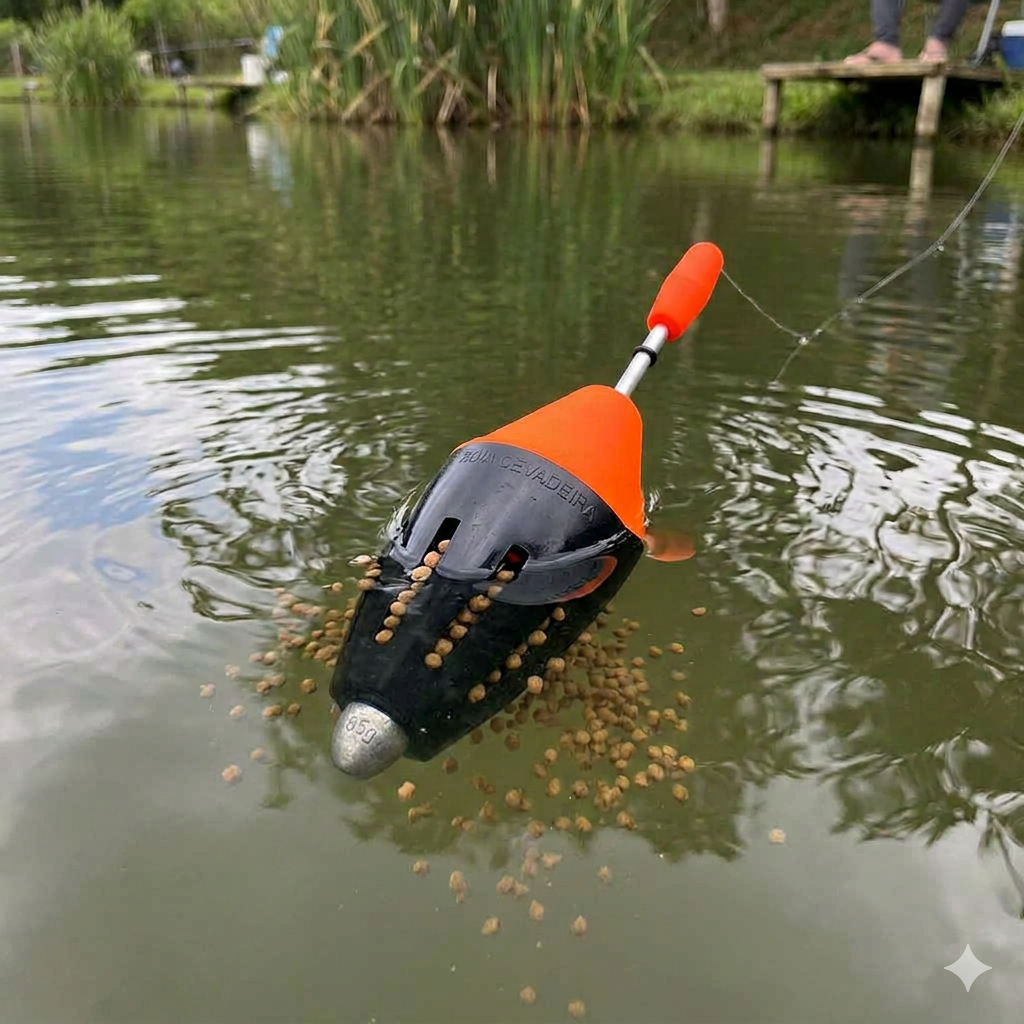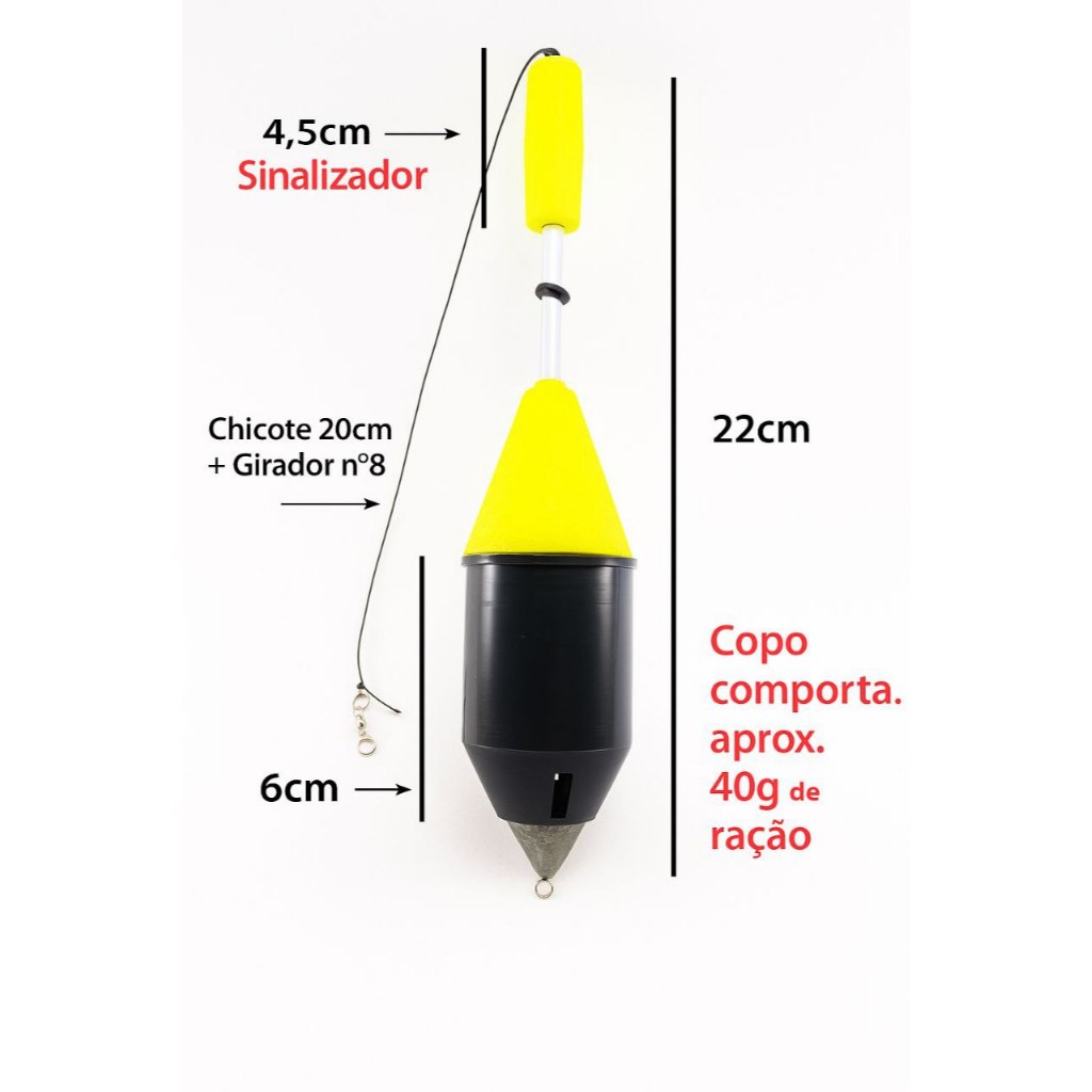 Boia Cevadeira Pesqueiro Pesca Kit Pacu Tamba 35g a 85g Cano Aluminio Arremesso Longo Antena Chicote