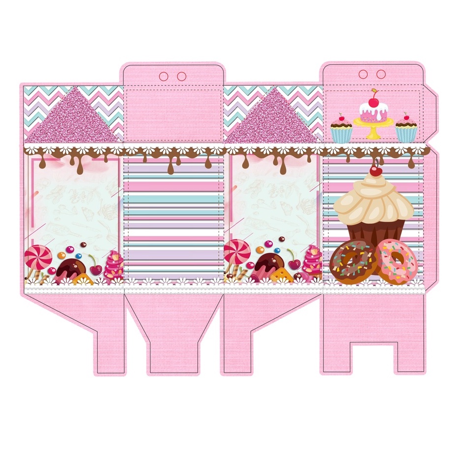 KIT 10 UND. CAIXINHAS PERSONALIZADAS (FOLHA COM ARTE IMPRESSA) TEMA CONFEITARIA