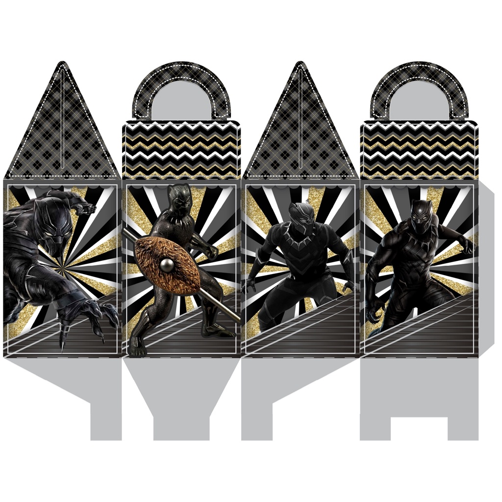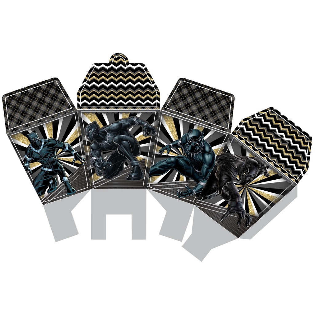 KIT 10 UND. CAIXINHAS PERSONALIZADAS (FOLHA COM ARTE IMPRESSA) TEMA PANTERA NEGRA
