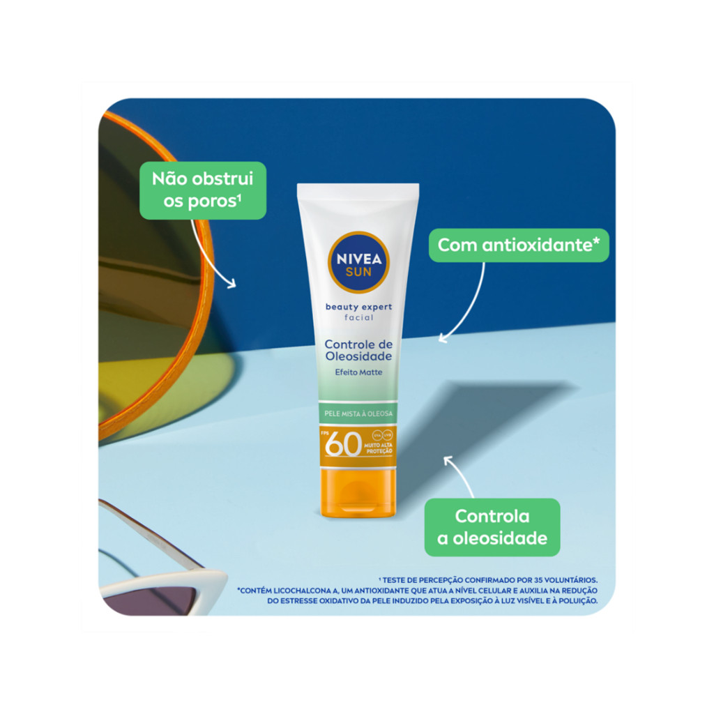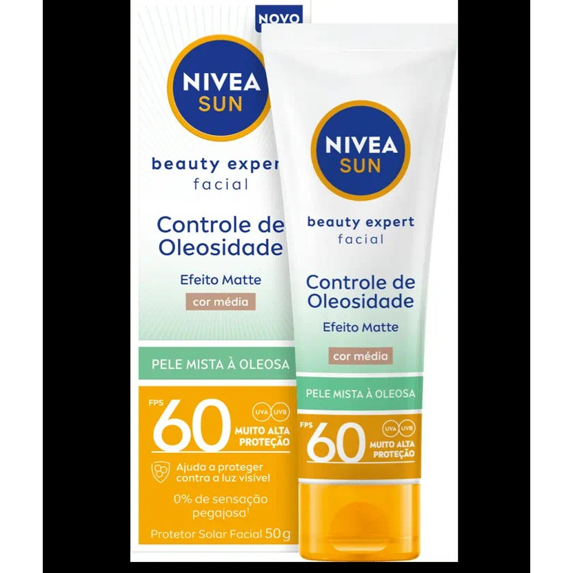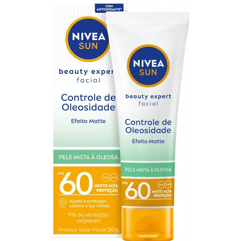 Protetor Solar Facial Nivea Sun Beauty Expert Controle de Oleosidade FPS 60 Com e Sem Cor 50g