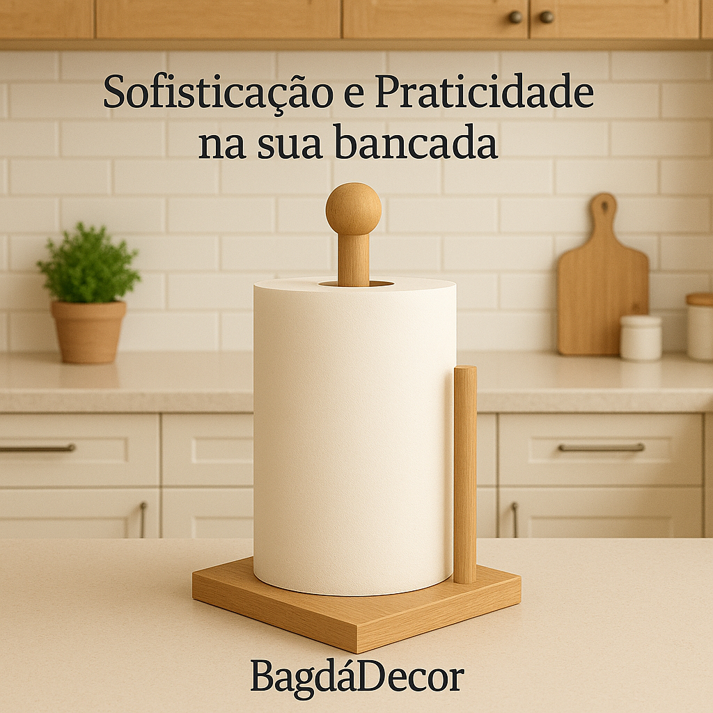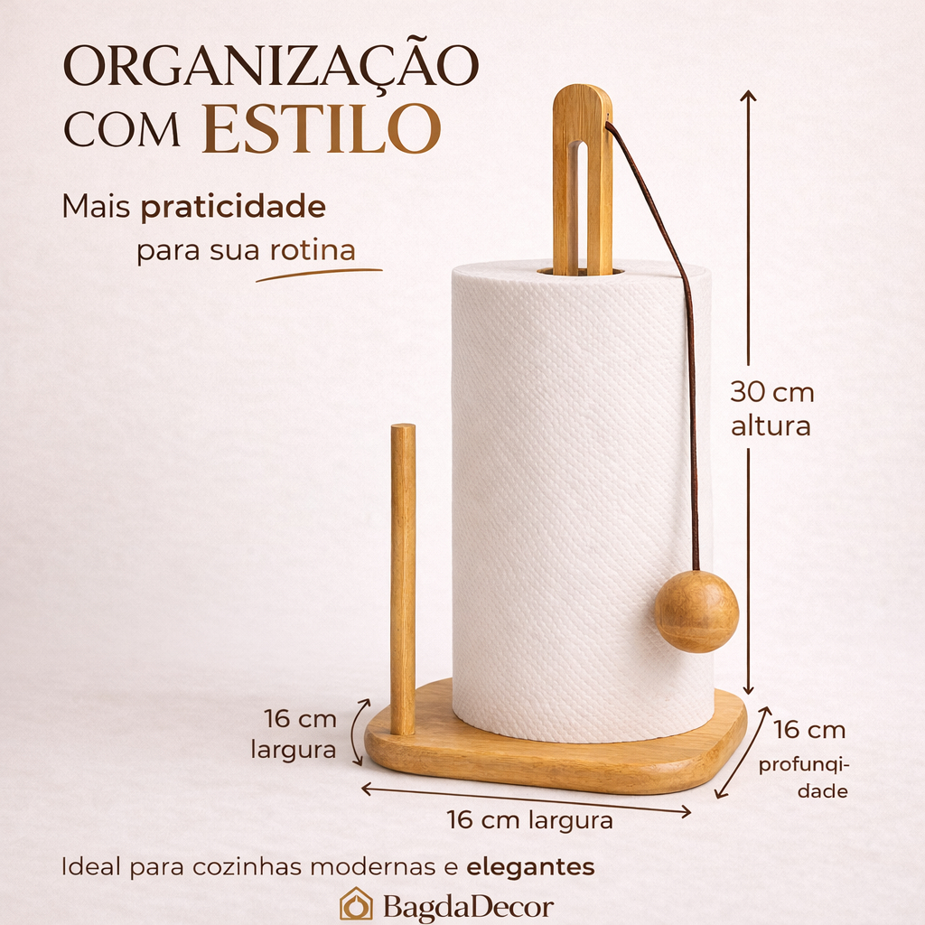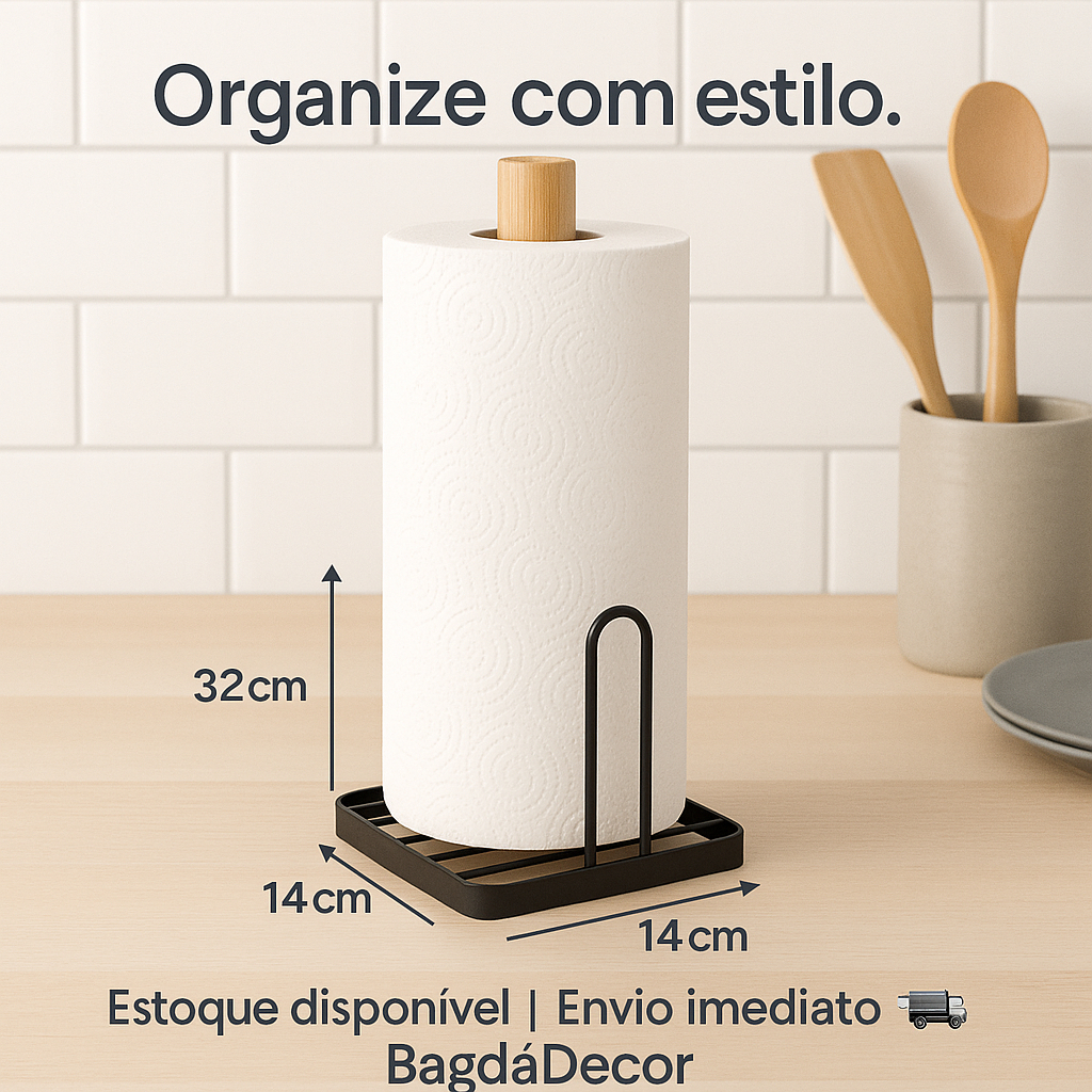 Porta Papel Toalha Bambu Suporte Vertical Organizador Madeira Cozinha