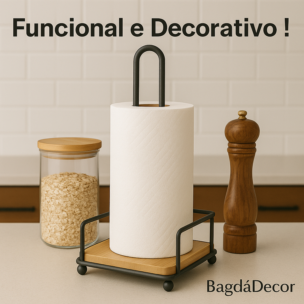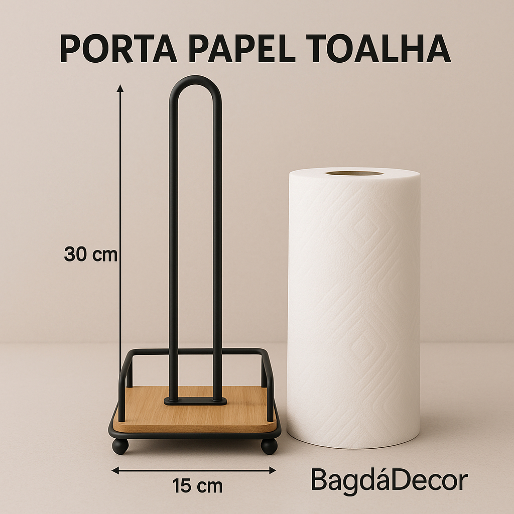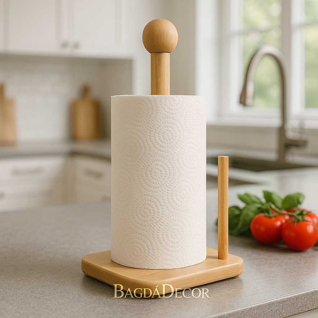 Porta Papel Toalha Bambu Suporte Vertical Organizador Madeira Cozinha