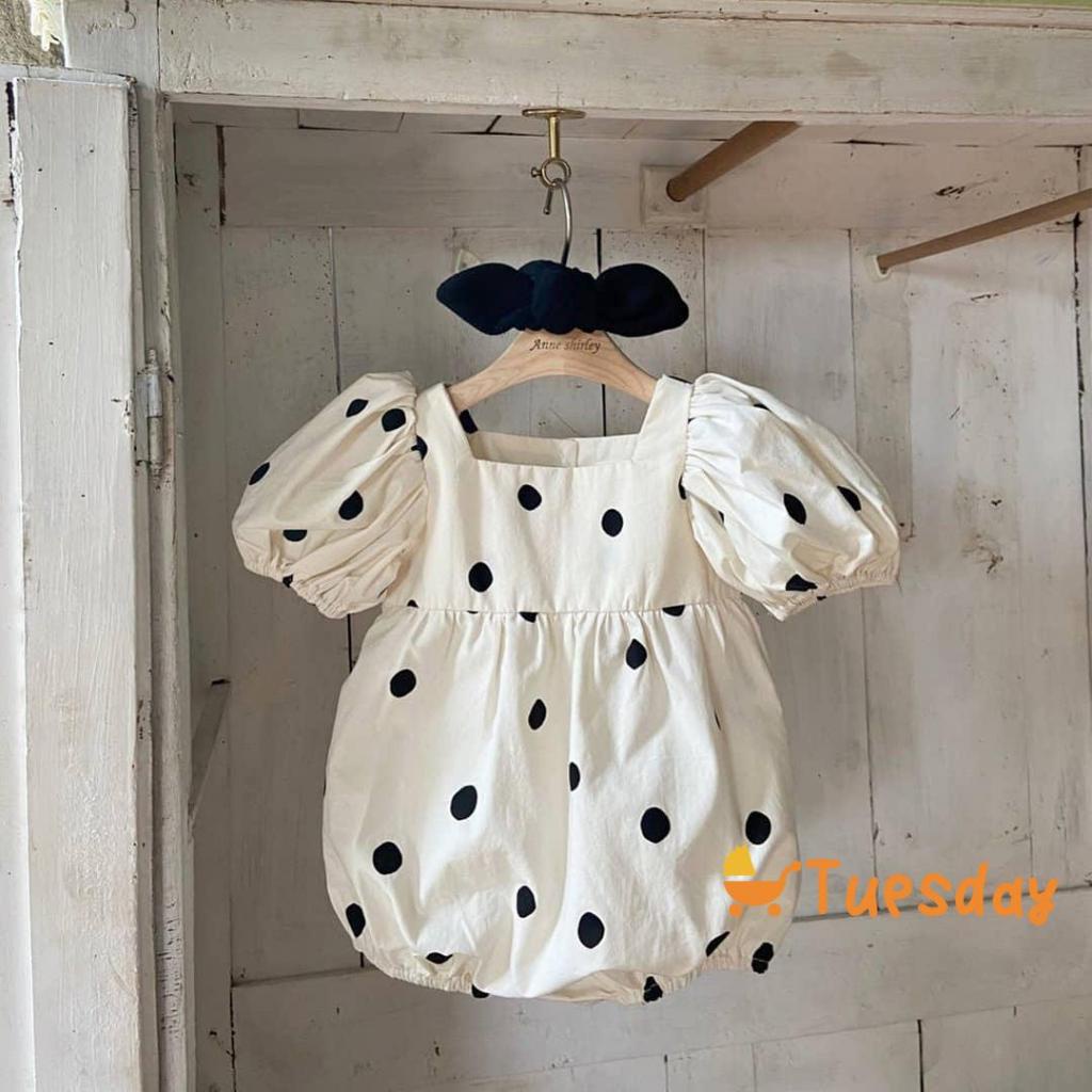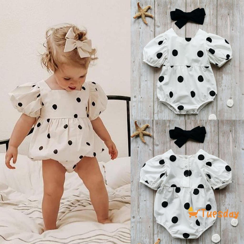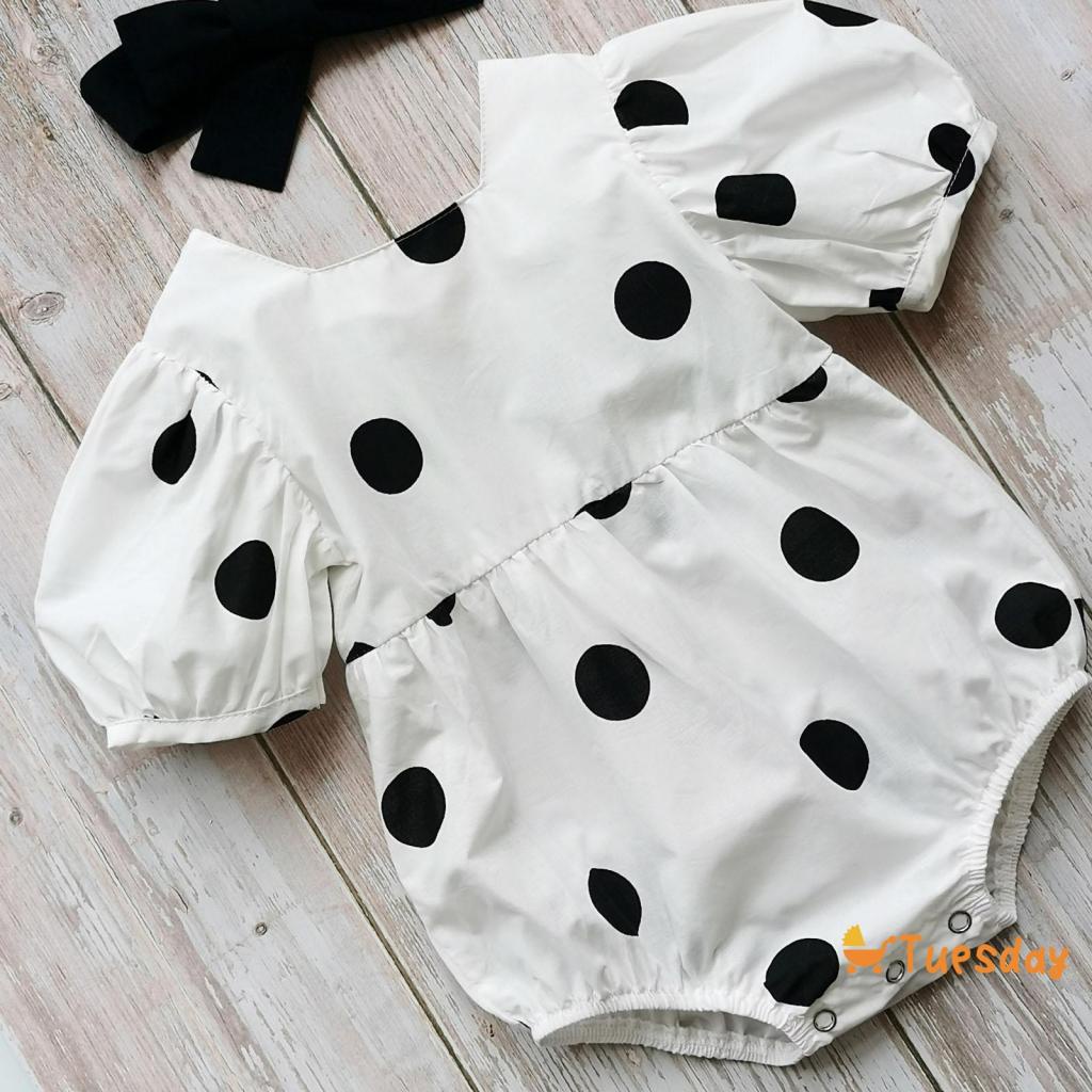 Macacão De Manga Curta Com Terça-Feira + Laço Para A Cabeça De Bolinhas Estampa Doce Estilo Verão Roupas