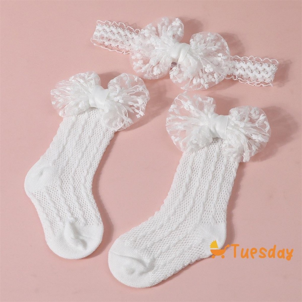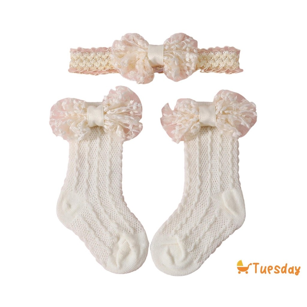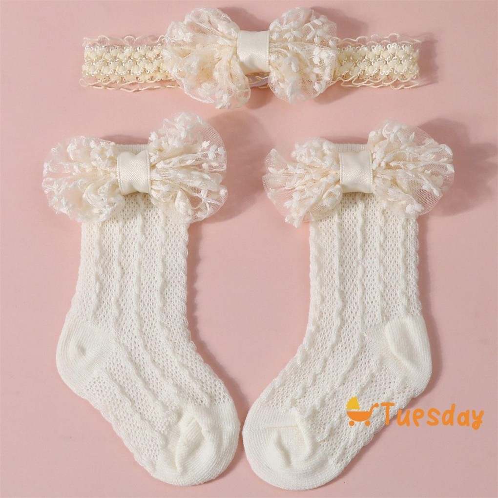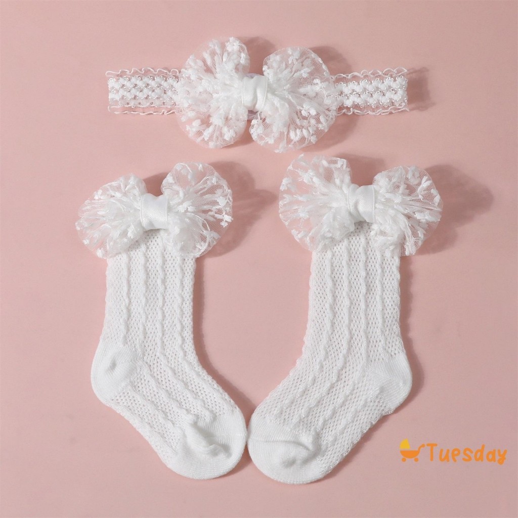Bebê Meninas Meias Bandana Conjunto Respirável Malha Arco Princesa Para Festa De Casamento Fotografia