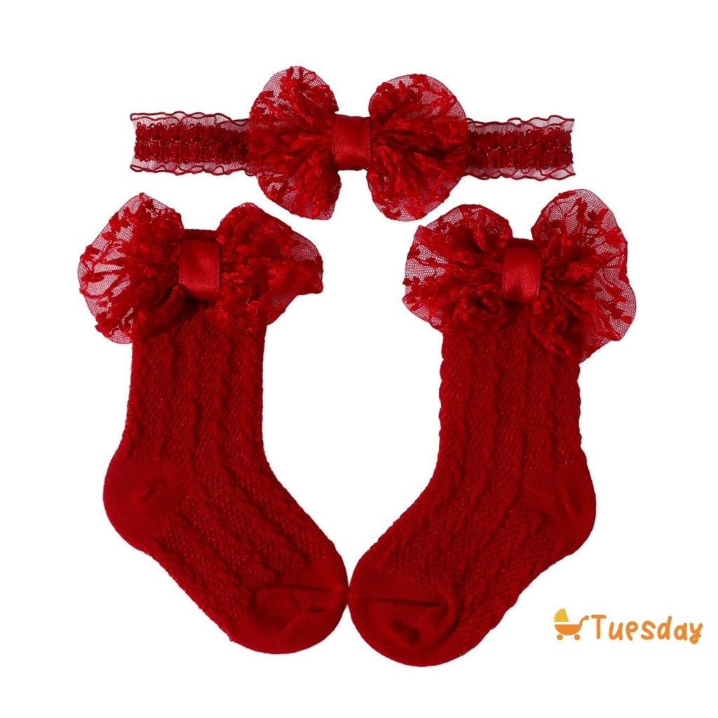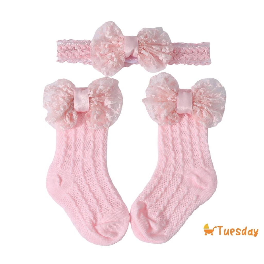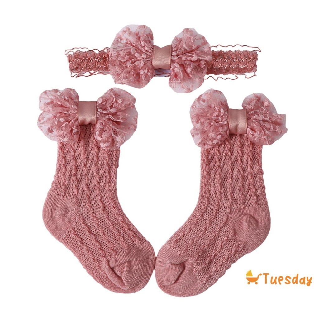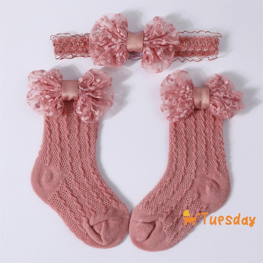 Bebê Meninas Meias Bandana Conjunto Respirável Malha Arco Princesa Para Festa De Casamento Fotografia