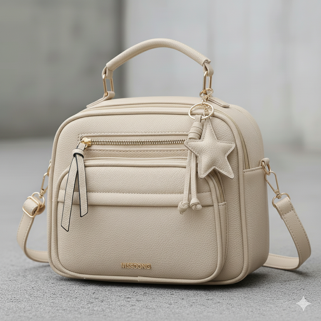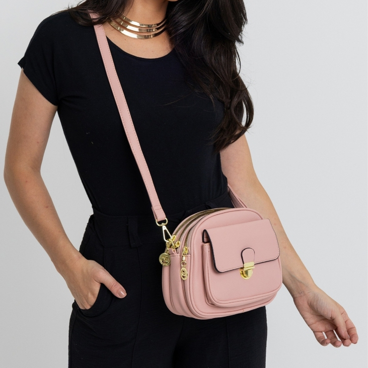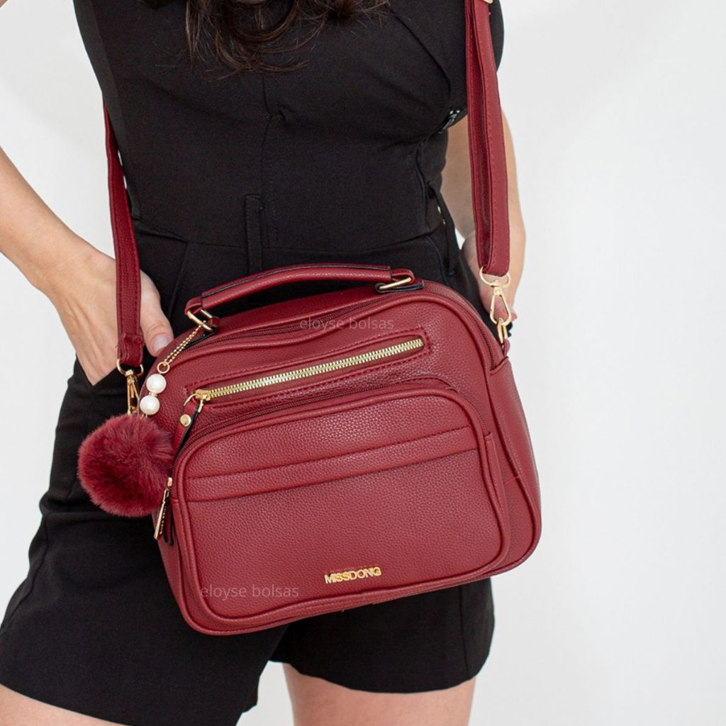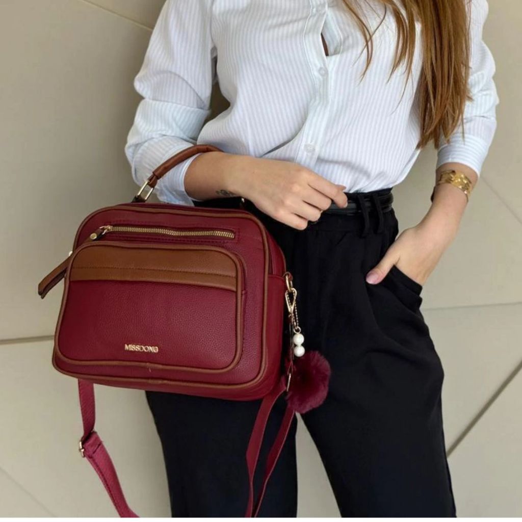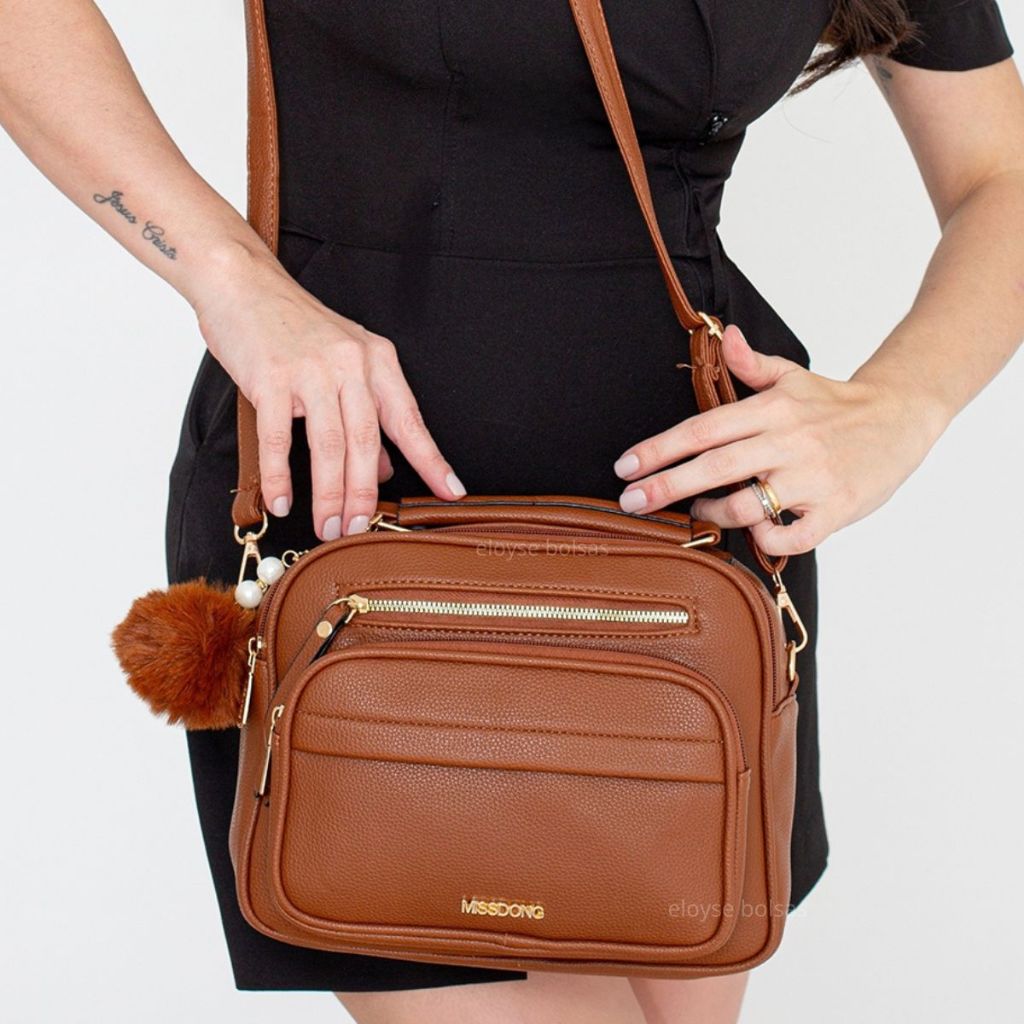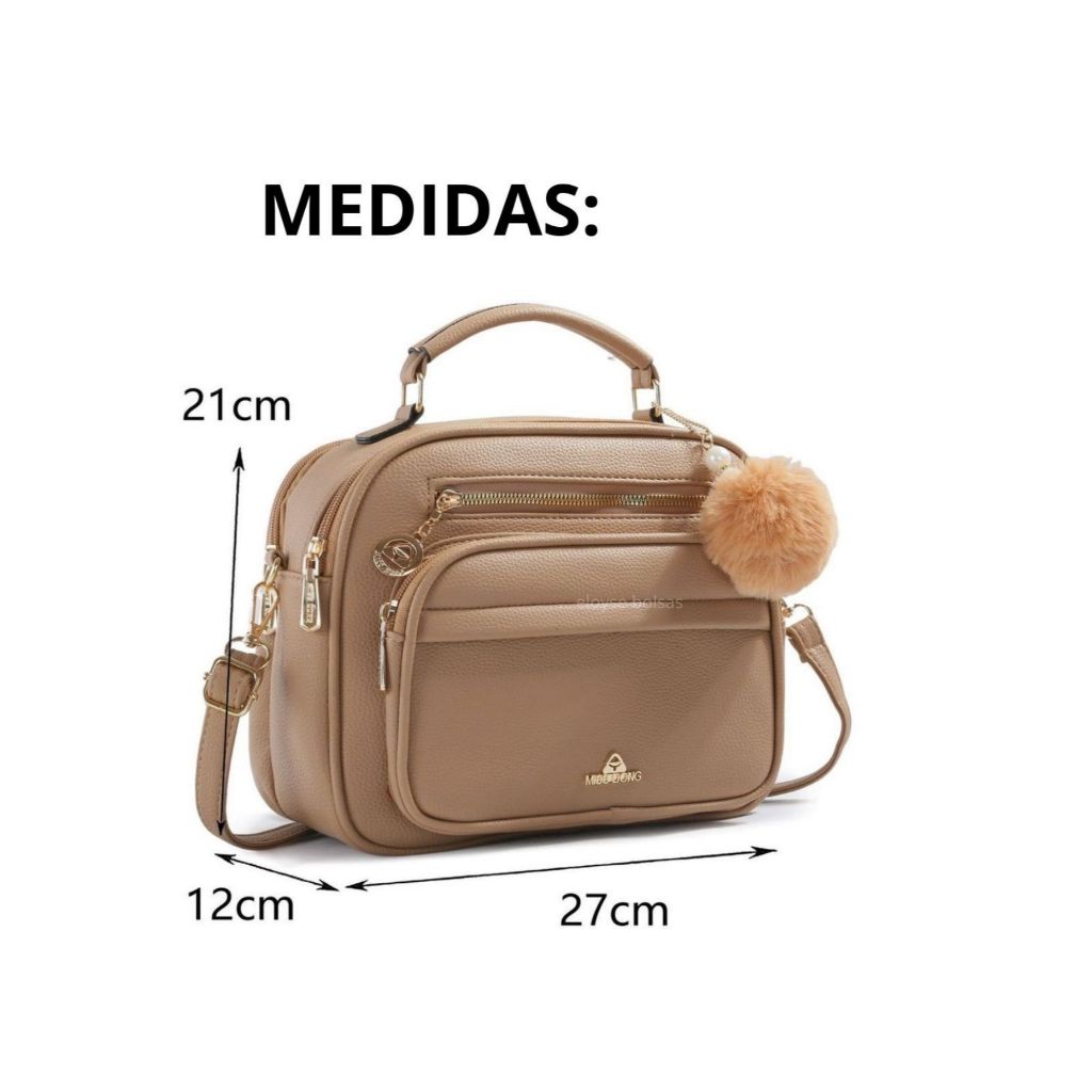 Bolsa Feminina Transversal Para Trabalho Tamanho Média Espaçosa Promoção Baú Com Chaveiro Pompom