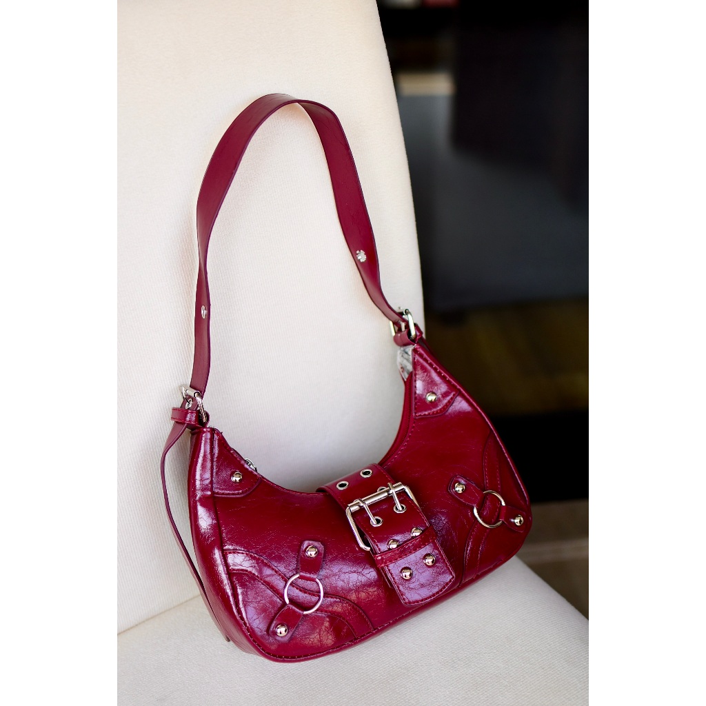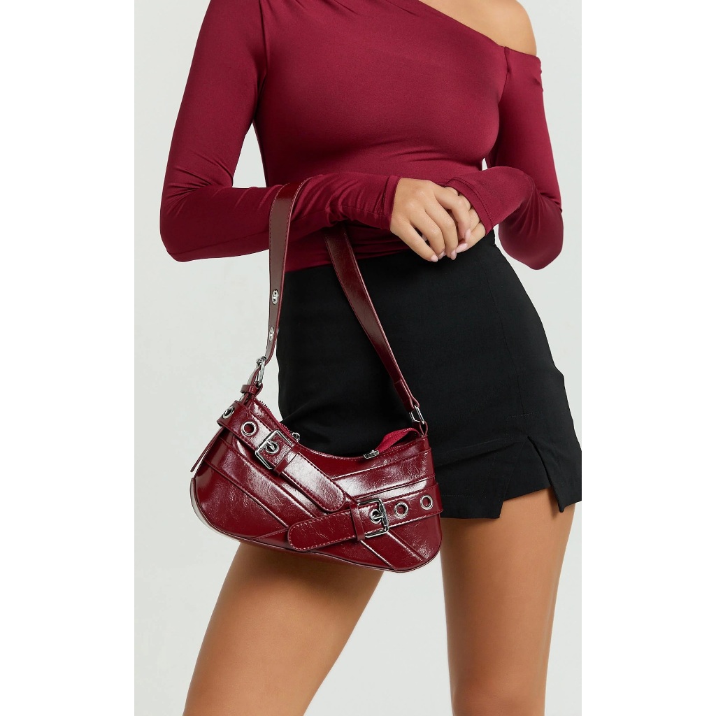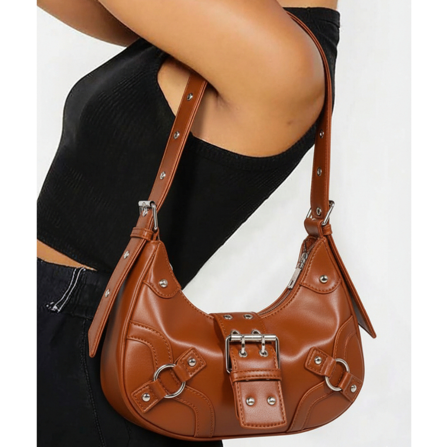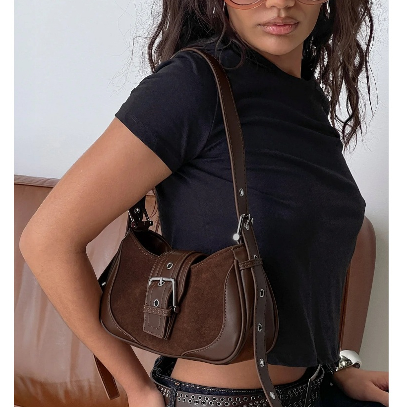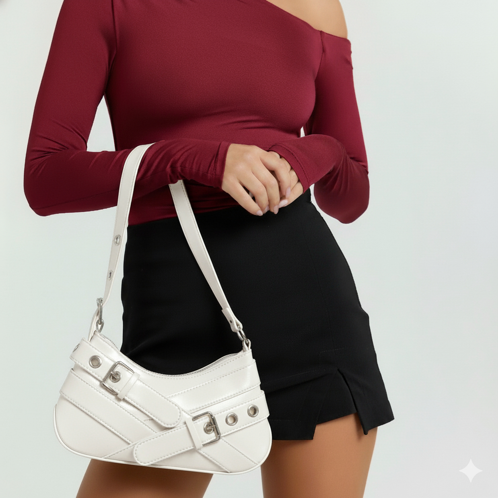 Bolsa Feminina Media De Ombro Baguete Para Festa Festival Rock Y2K Bolsa Preta Prateada Com Fivela