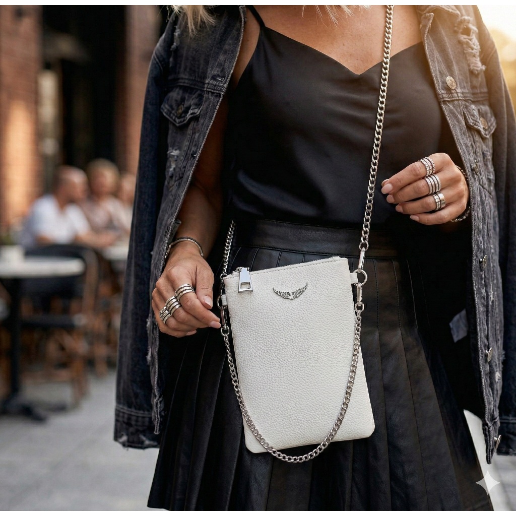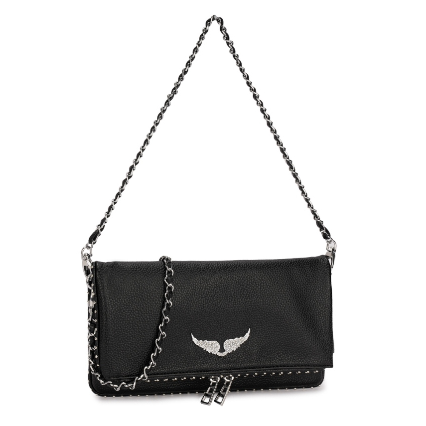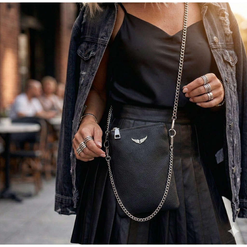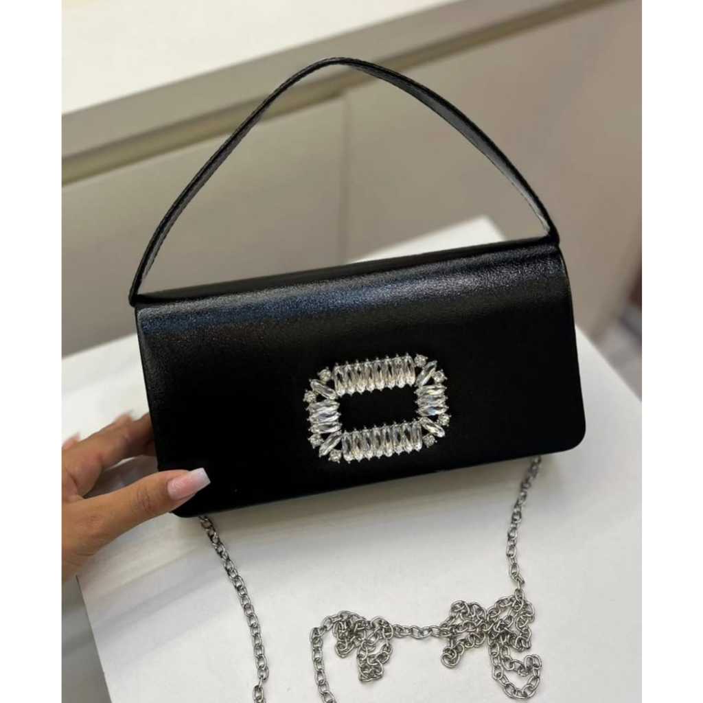 Bolsa Feminina duas Alça Transversal Transpassada Bolsa Preta Alça De Corrente Festa Balada Rock