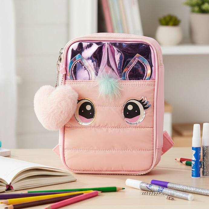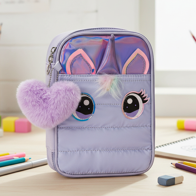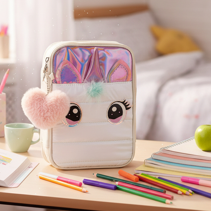Estojo Escolar Infantil De Menina Unicórnio 3D com Zíper Grande Organizador Lapís Papelaria Fofa