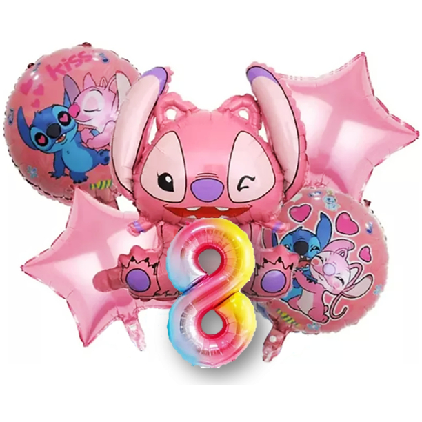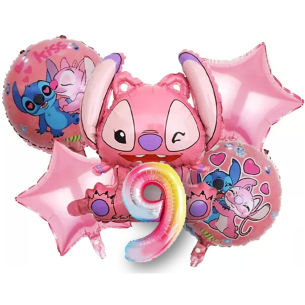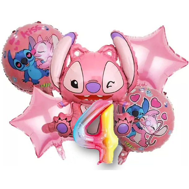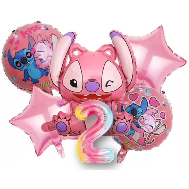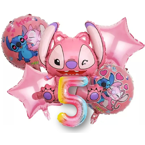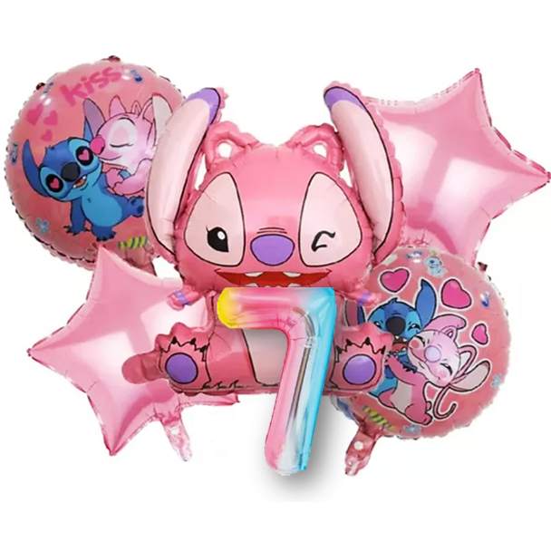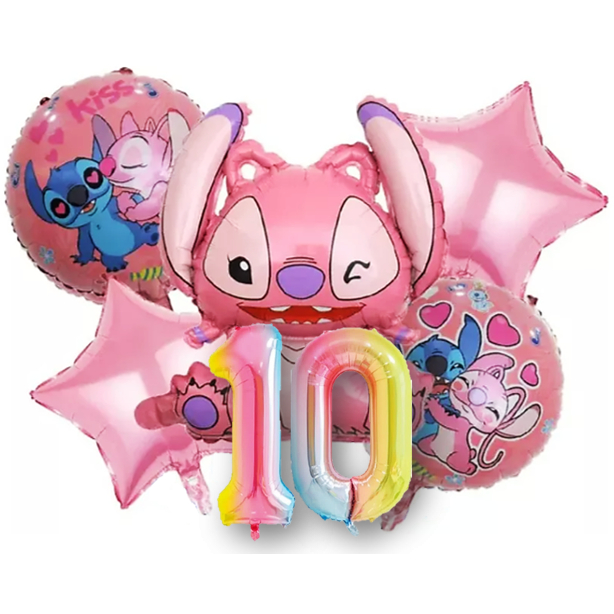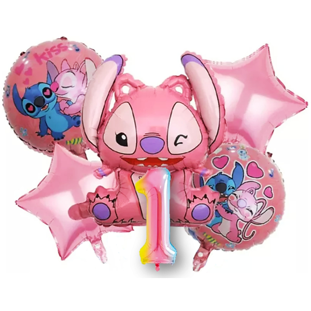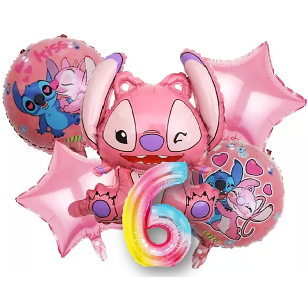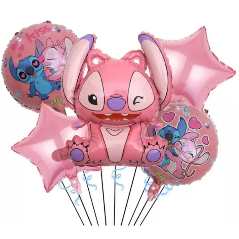 Kit 6 Balões Stitch e Angel Metalizados – Festa Infantil, Decoração e Aniversário 🎈