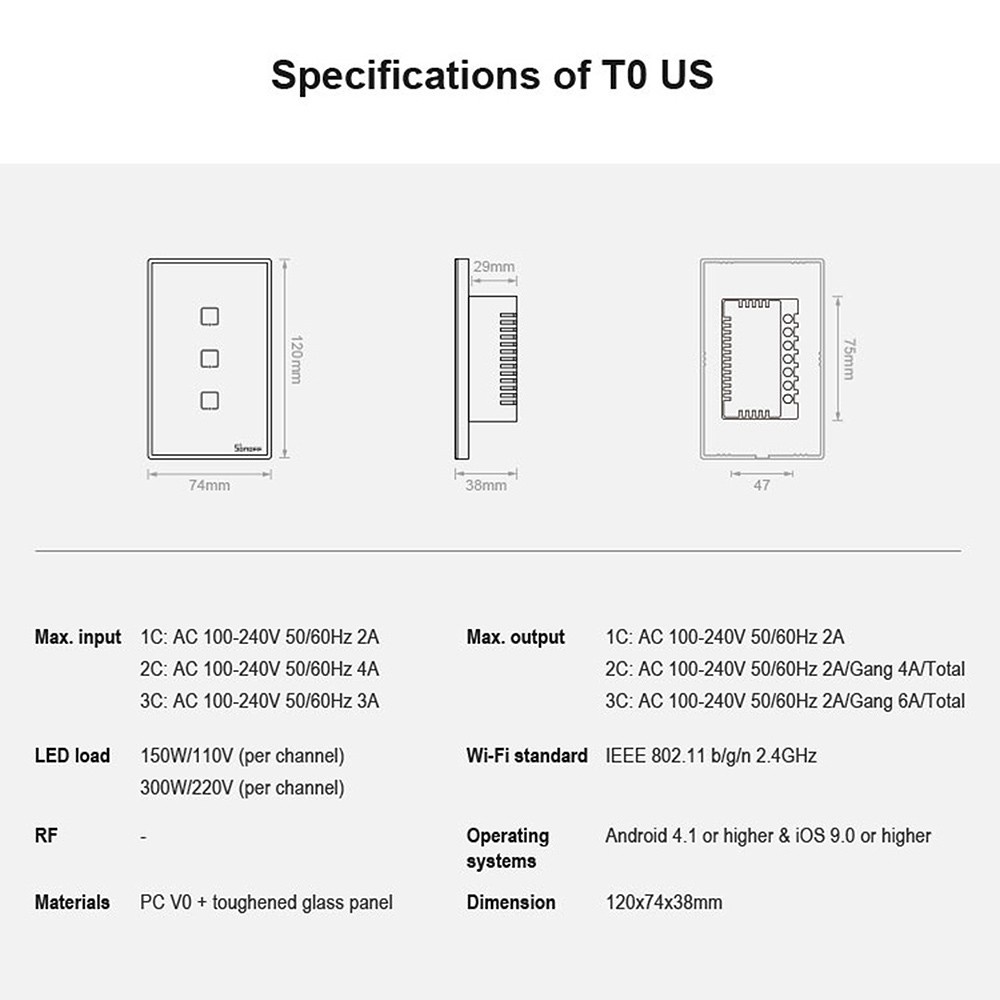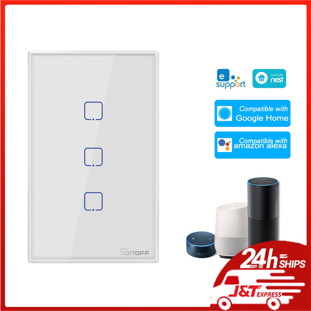 Interruptor De Claro De Parede Sonoff T0Us3C-Tx 3 Gangue Smart Wifi App / Touch Control Temporizador Painel Padrão Eua