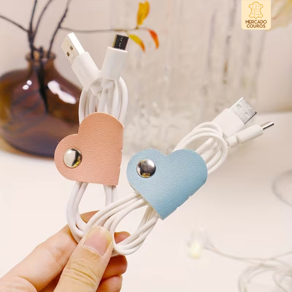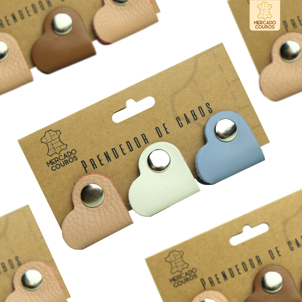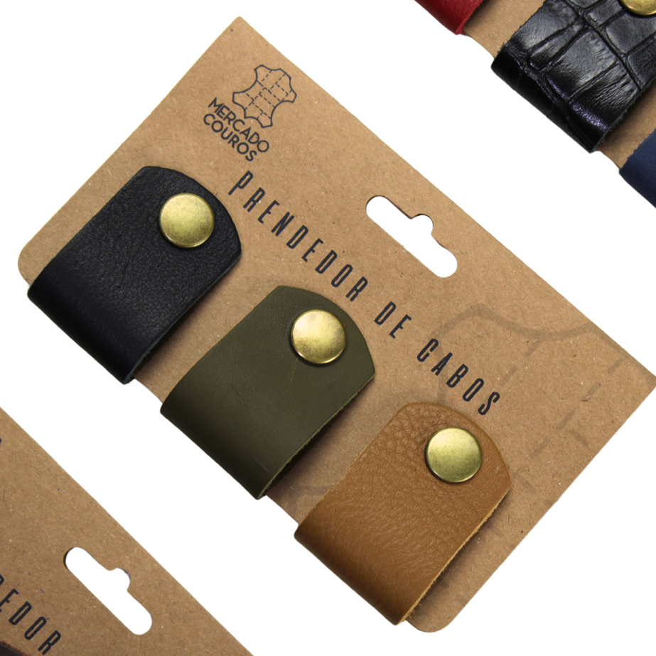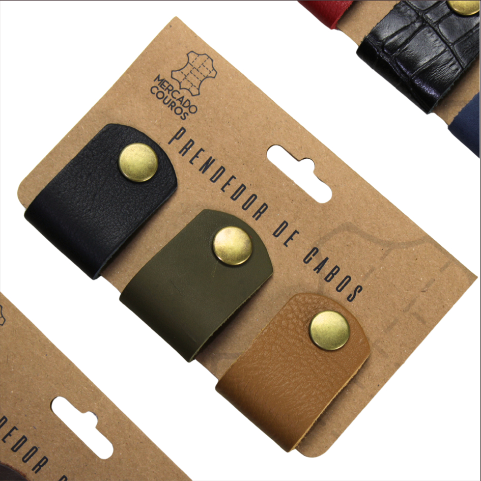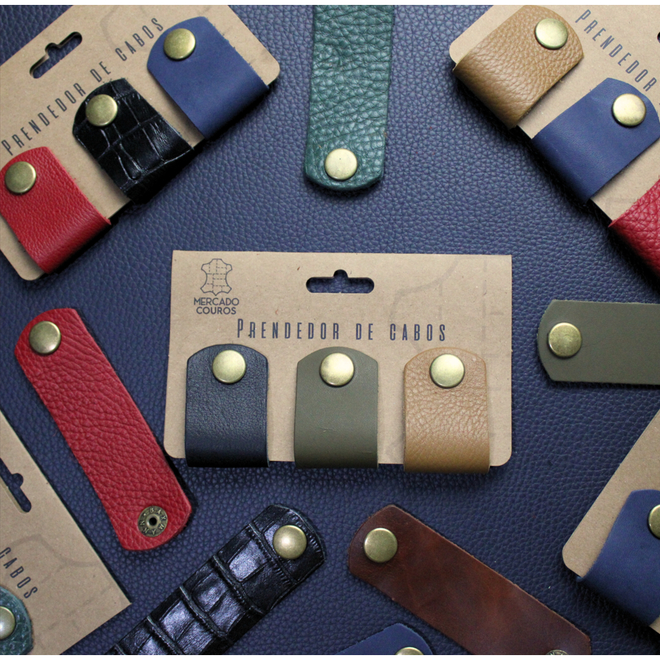 Kit 3 Organizador De Cabos Fios Fones Em Couro 100% Legítimo Core Sortidas