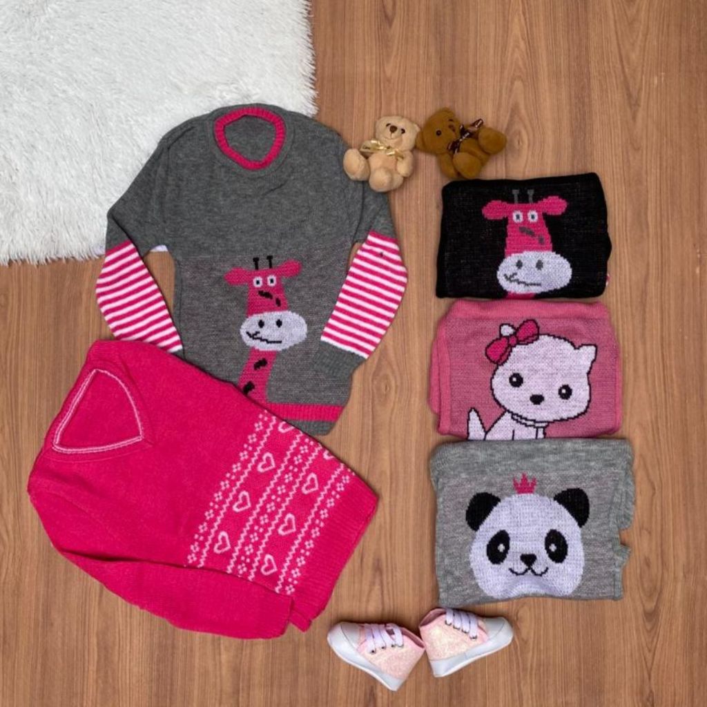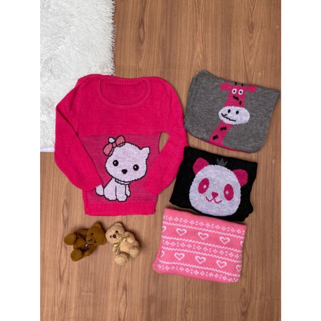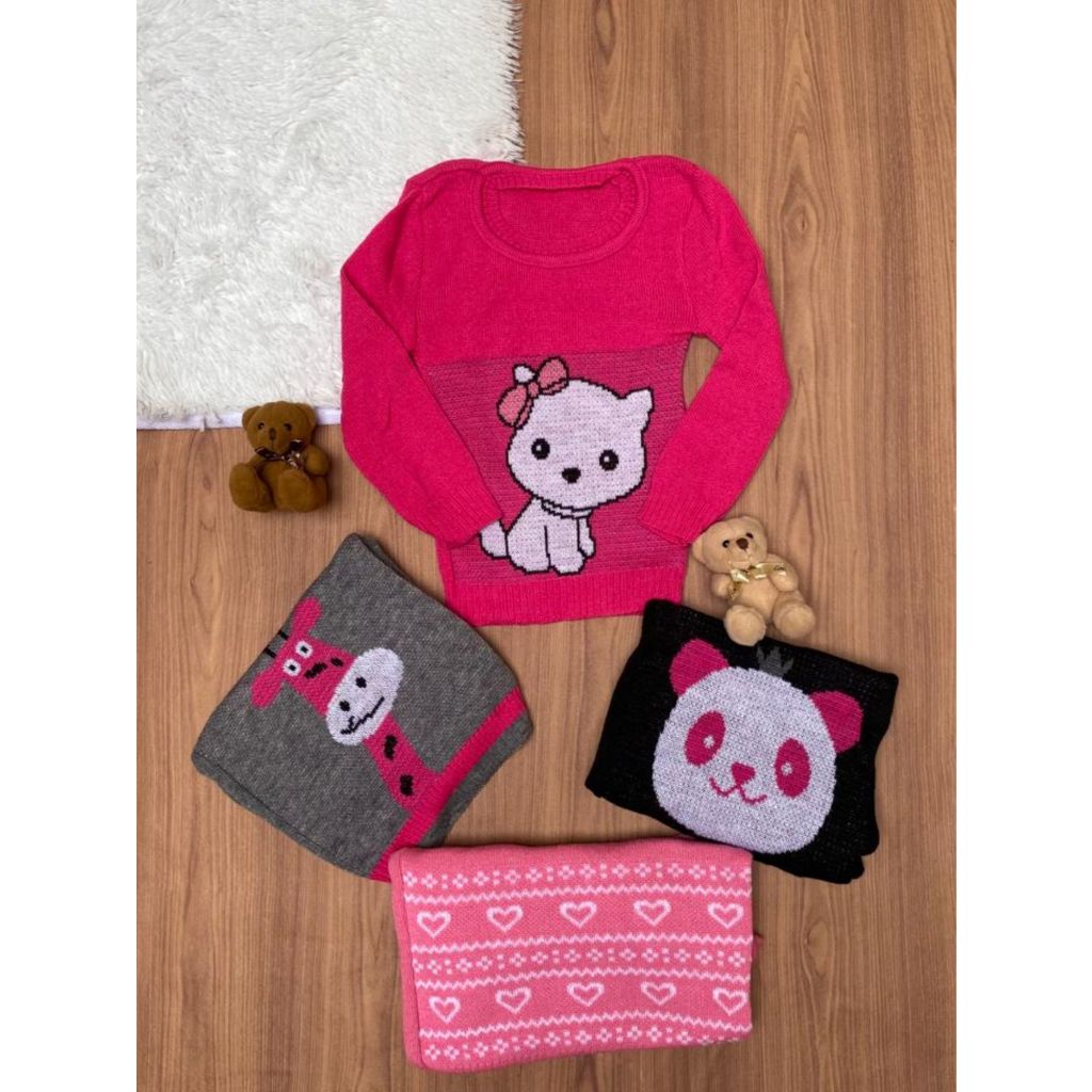 Kit 3 Suéter Feminino Infantil Menina Modelo Variadas blusas de lã Agasalho