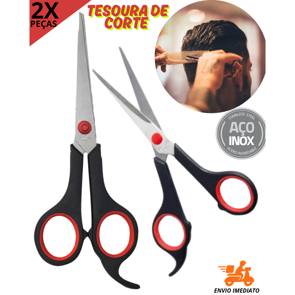 Tesoura Corte de Cabelo 5" Polegadas Profissional 2 Peças Aço Inox Salão Barbearia Fio Reto