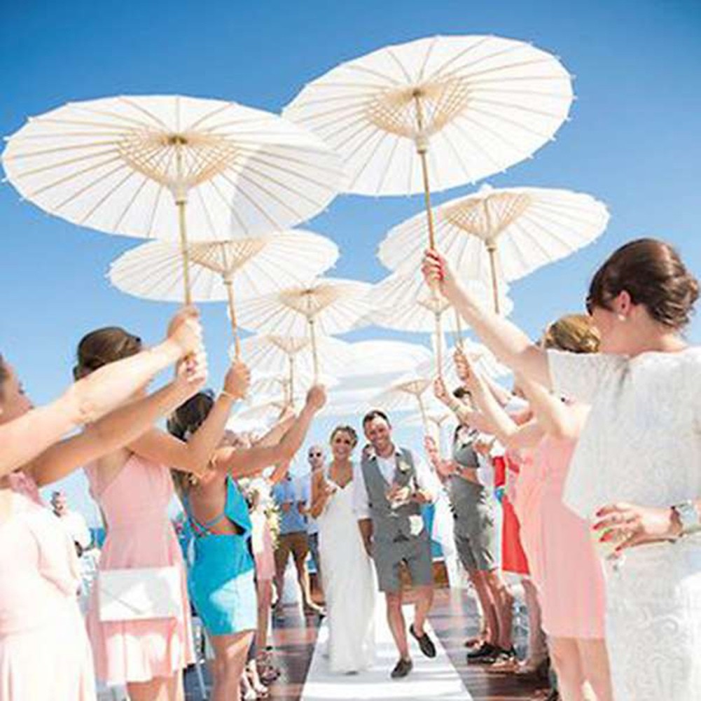 12 Pçs Guarda-Sol De Papel Chuva De Praia Branco DIY Fotografia Adereços Para Festas De Chá De Bebê Casamento 60cm/23.6