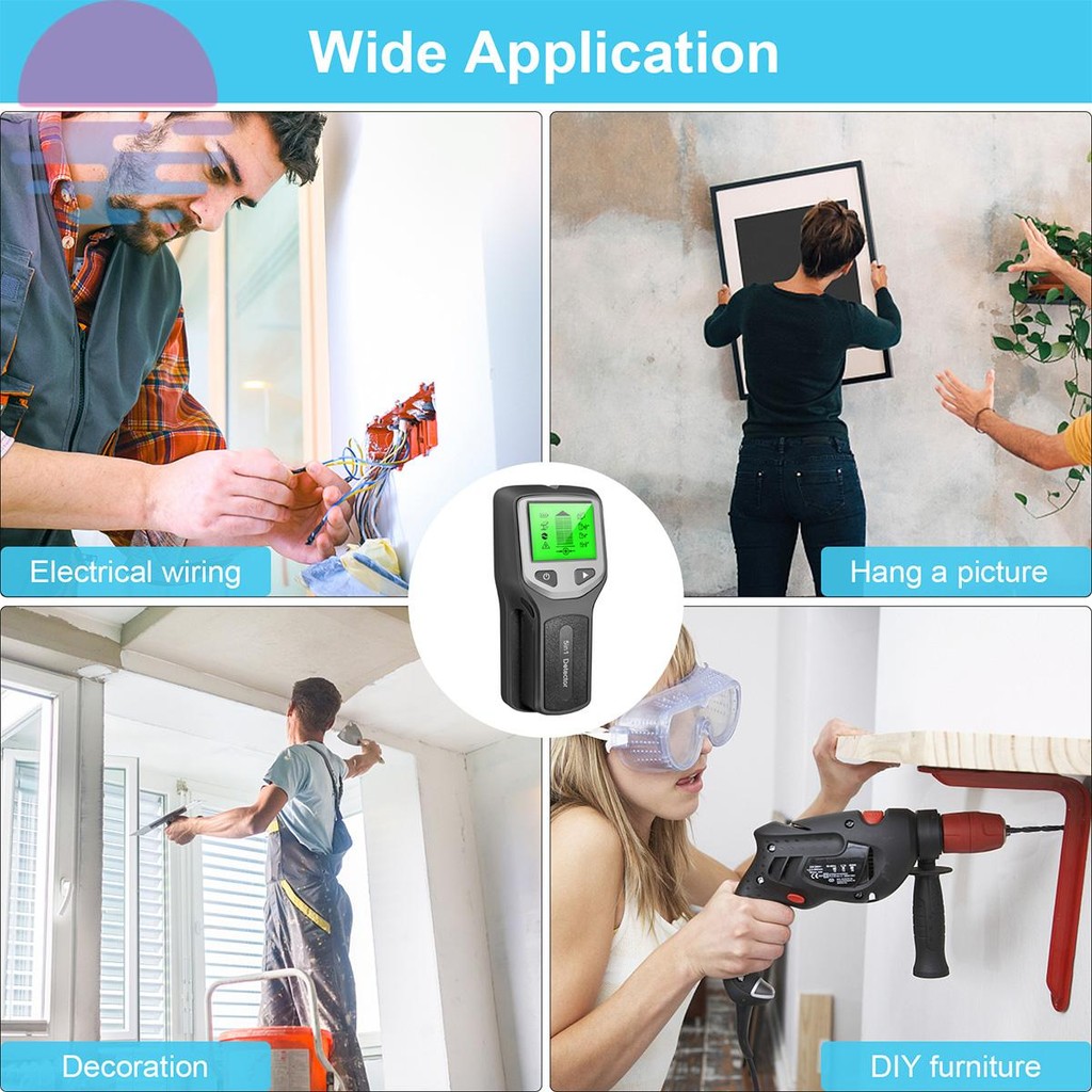 5 Em 1 Localizador De Pinos Scanner De Parede Elétrico Metal Tensão AC Detector De Fio Vivo Com Display LCD