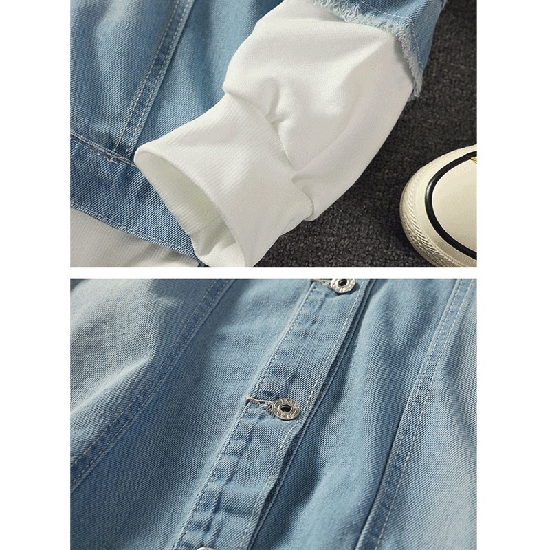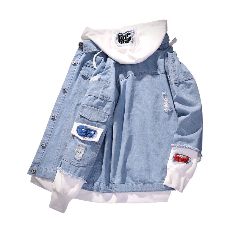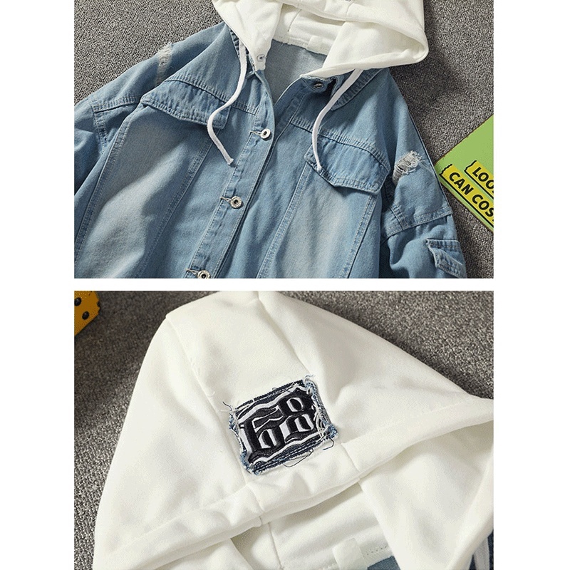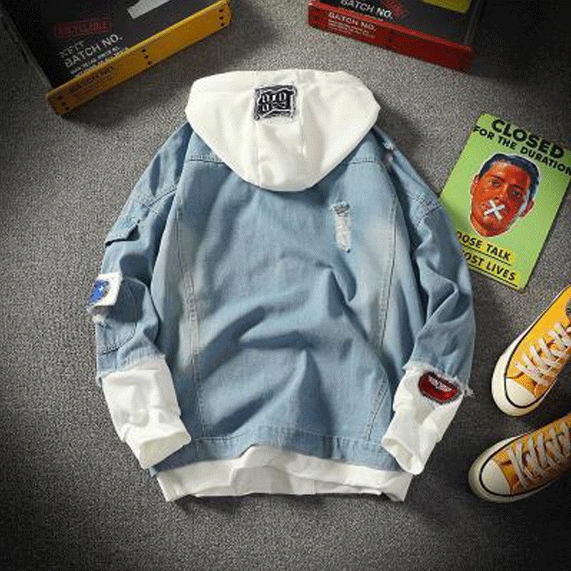 Jaqueta De Ganga Masculina Com Capuz Cowboy Falsas Duas Peças
