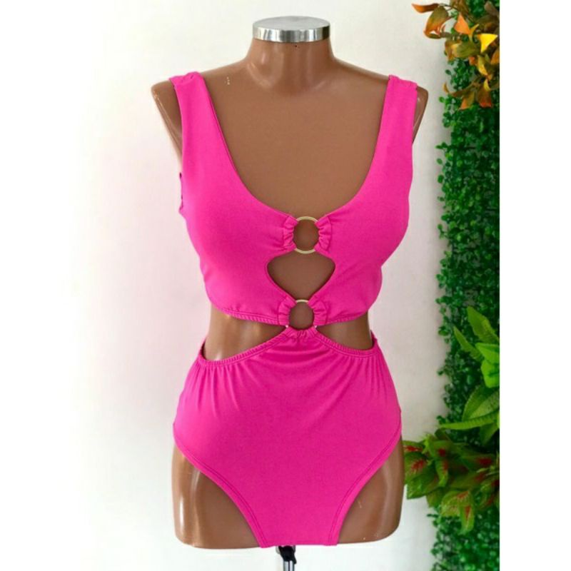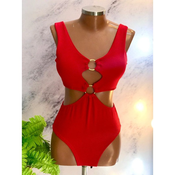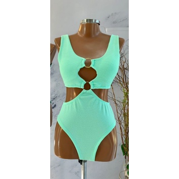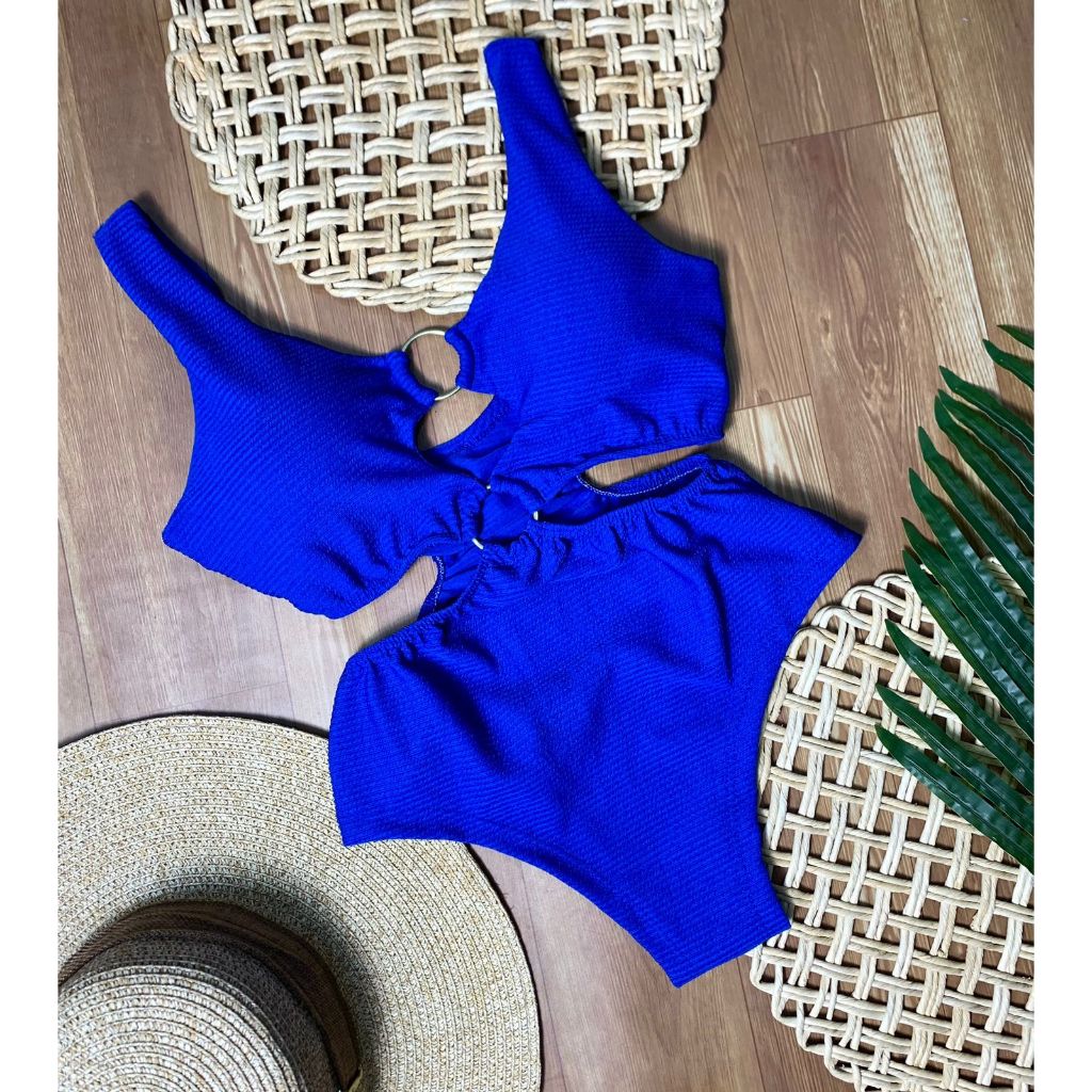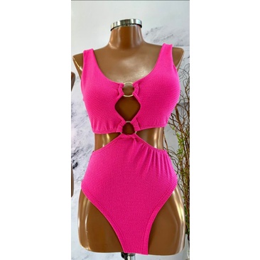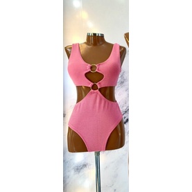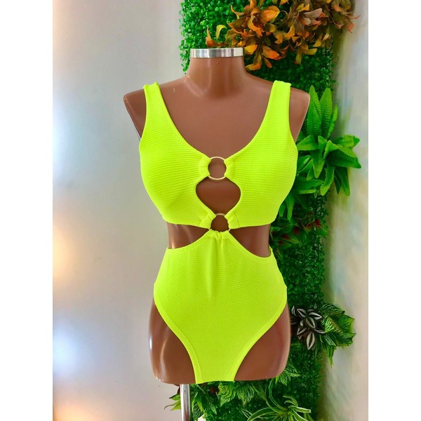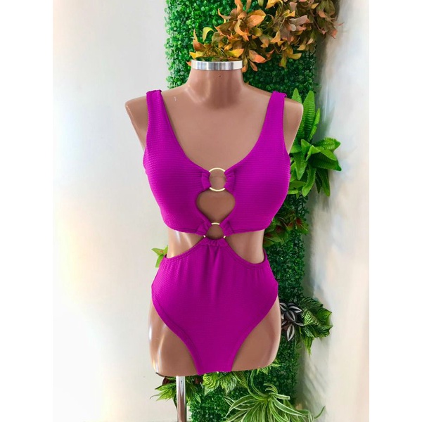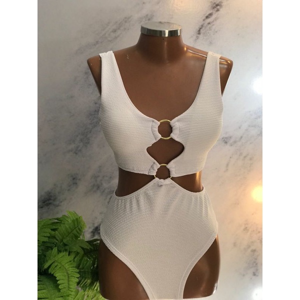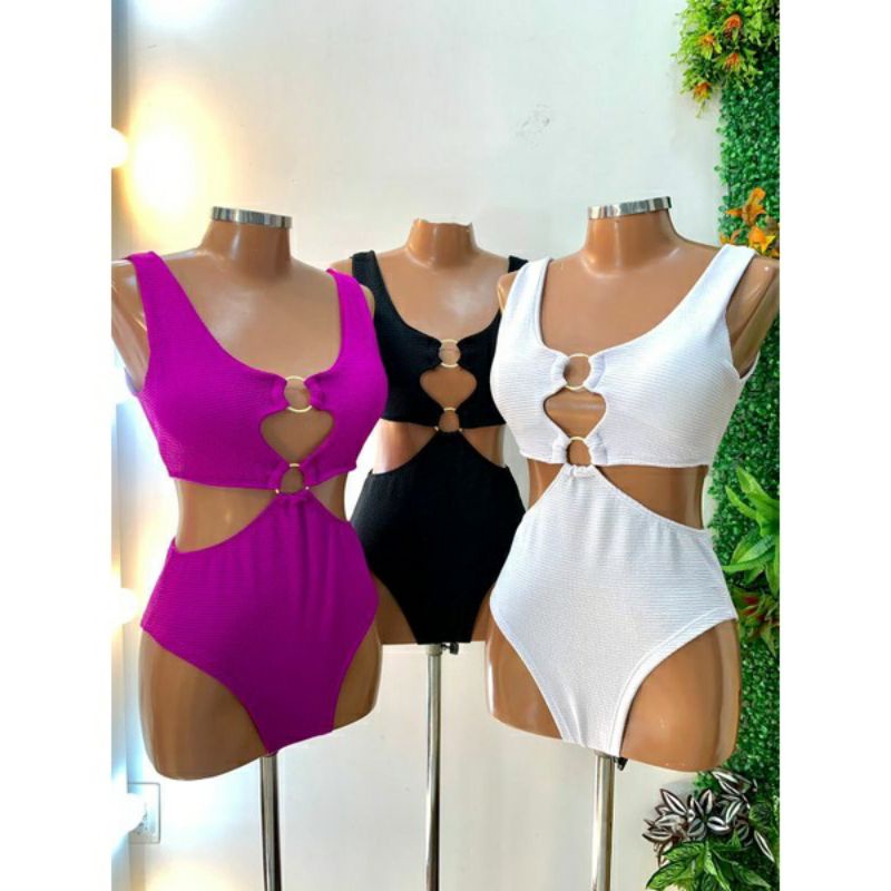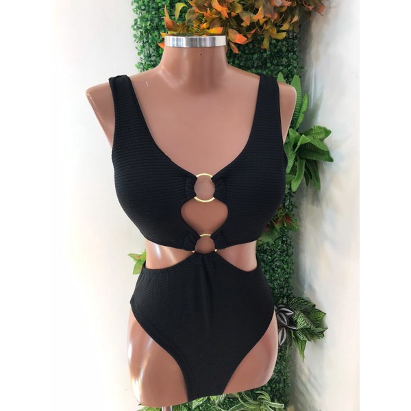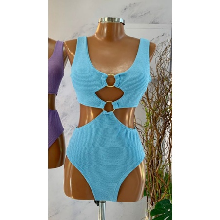 Body Maiô 2 Argolas Zig Zag Texturizado Moda Feminina