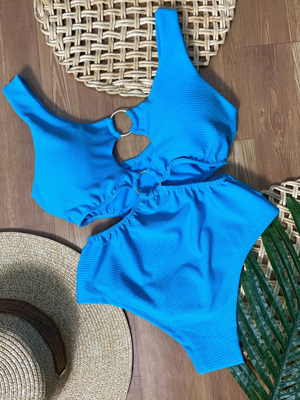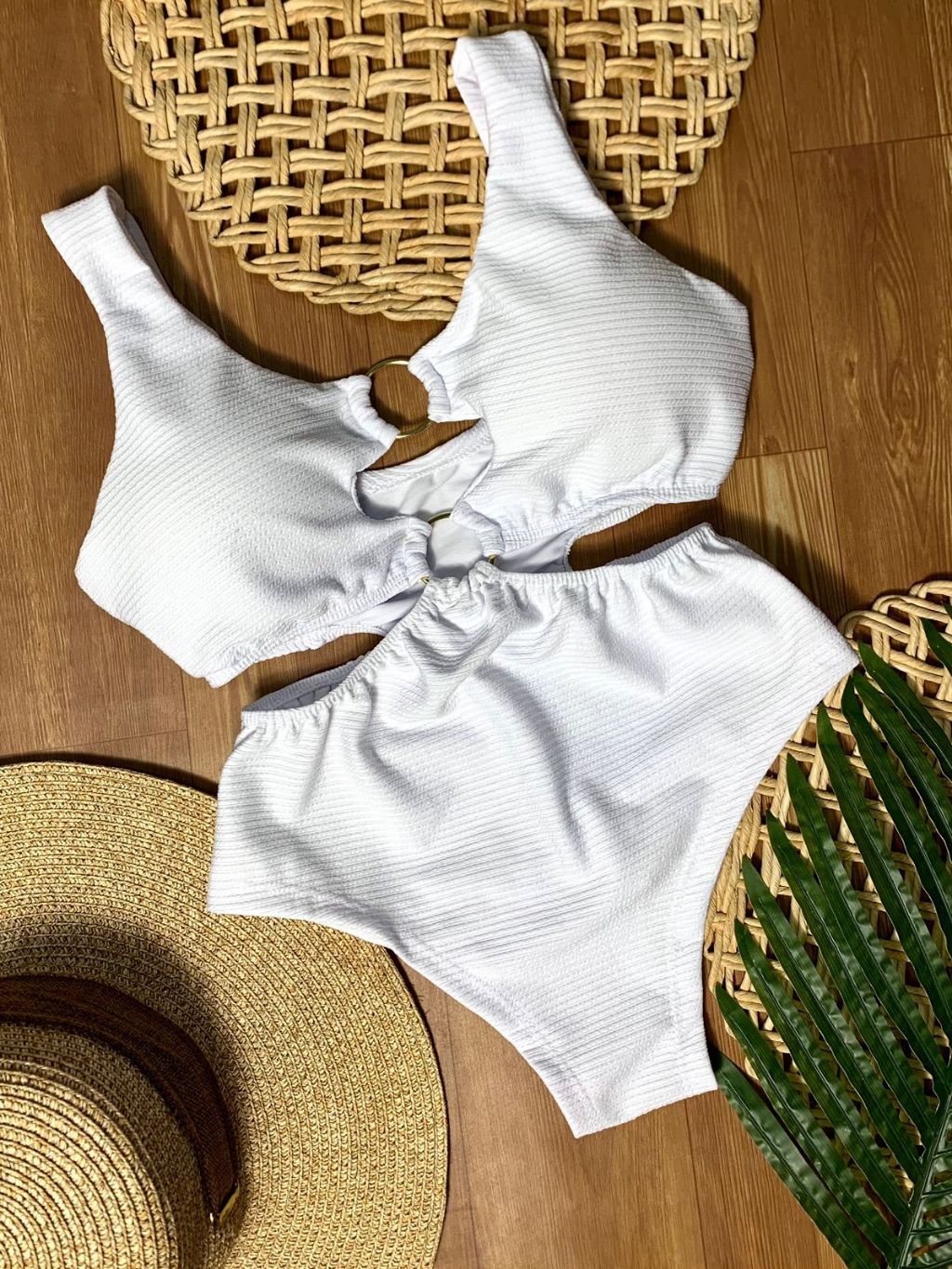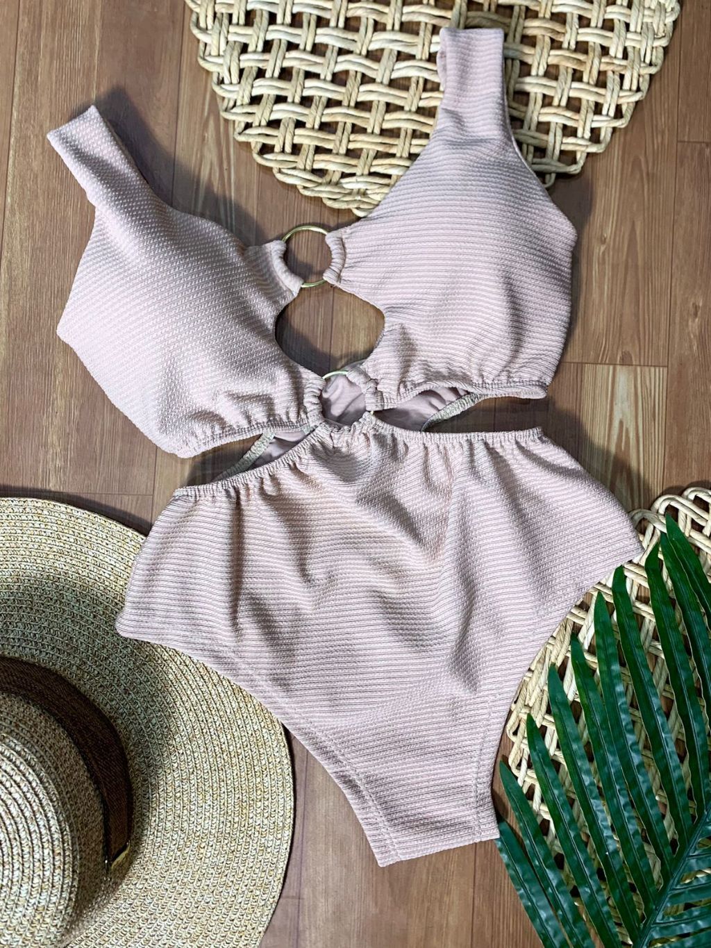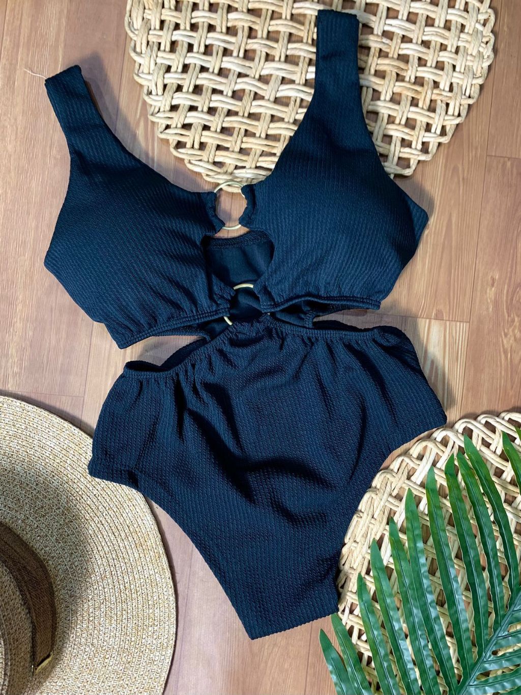 Body Maiô 2 Argolas Zig Zag Texturizado Moda Feminina