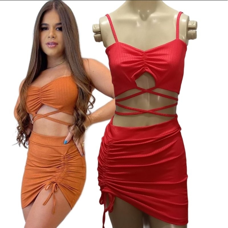 Conjunto Feminino ou Vestido Saia / Short + blusa / Top /Cropped canelado