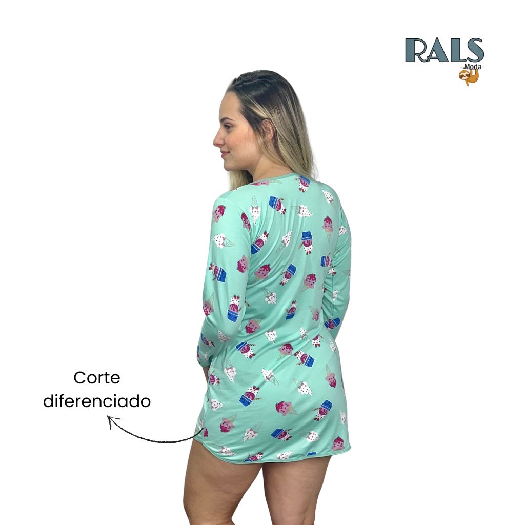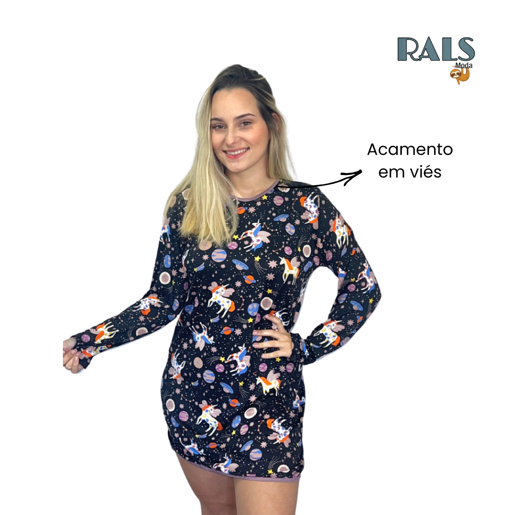 kit 02 Camisola de Manga Longa Estampada Suede Pijamas de inverno Noite do Pijamas
