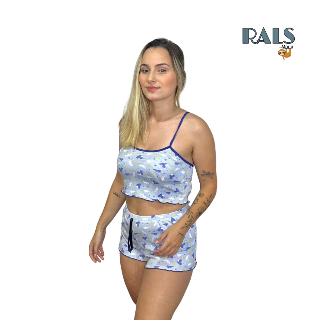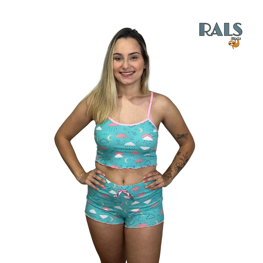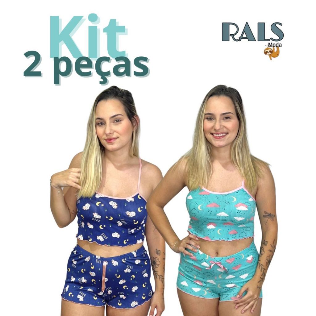 Kit com 2 Conjuntos Pijama Baby Doll, Short Dool de Cropped e Shortinhos Blogueirinha Estampado.