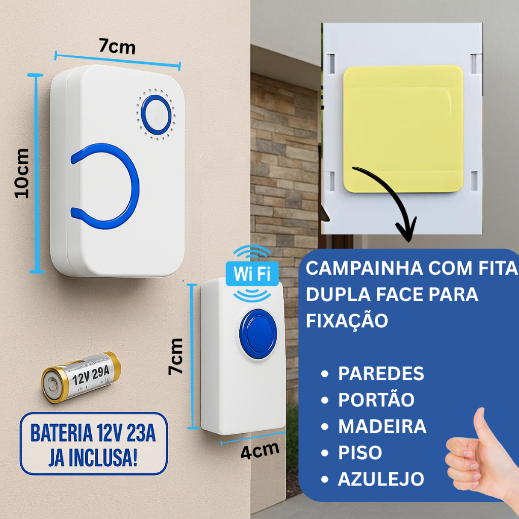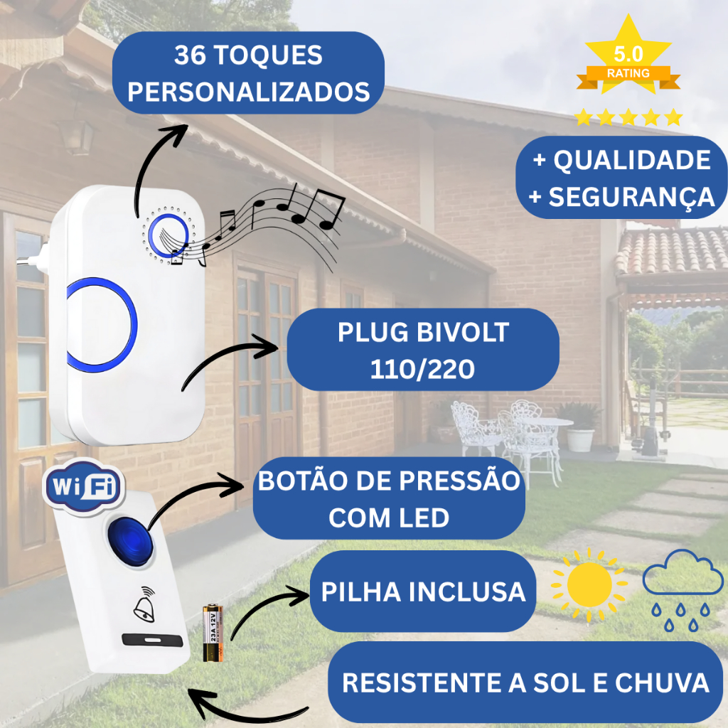 Campainha Residencial Wireless Sem Fios e Com Som Ajustável Resistênte a Chuva