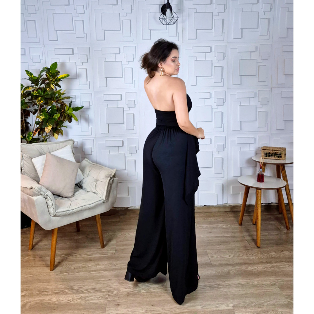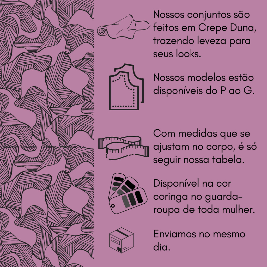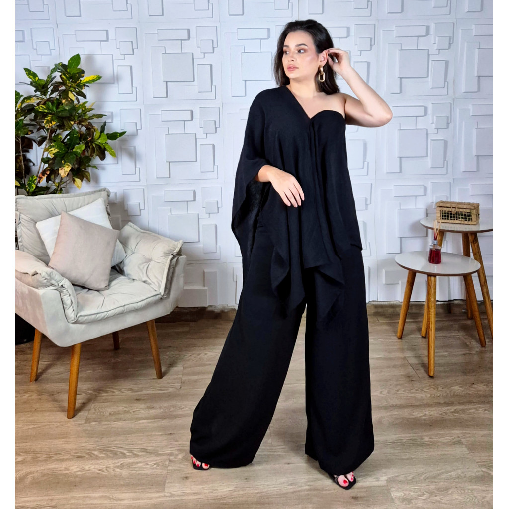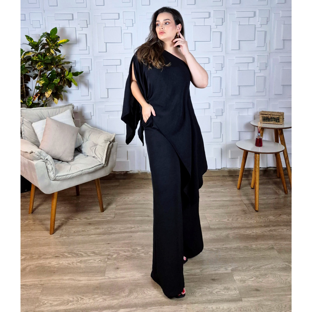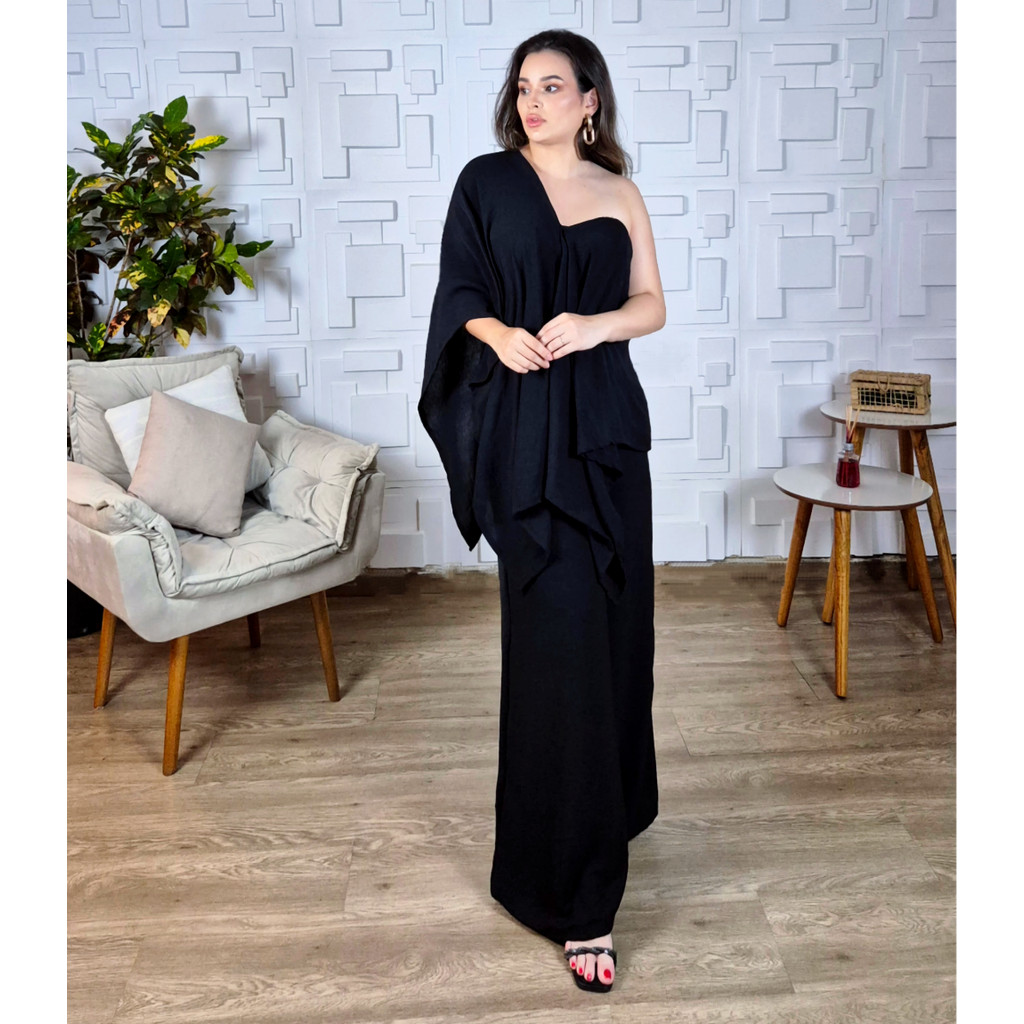 Conjunto 3 Peças feminino Calça Blusa Capa e Top Elegante Social Duna Bonito Preto Chique 7 em 1
