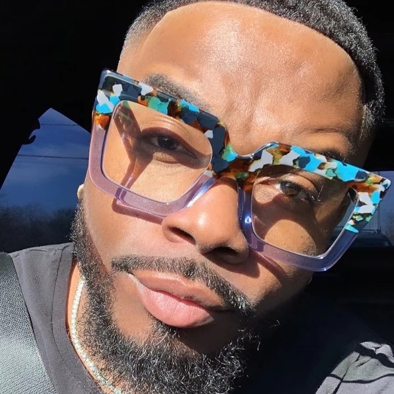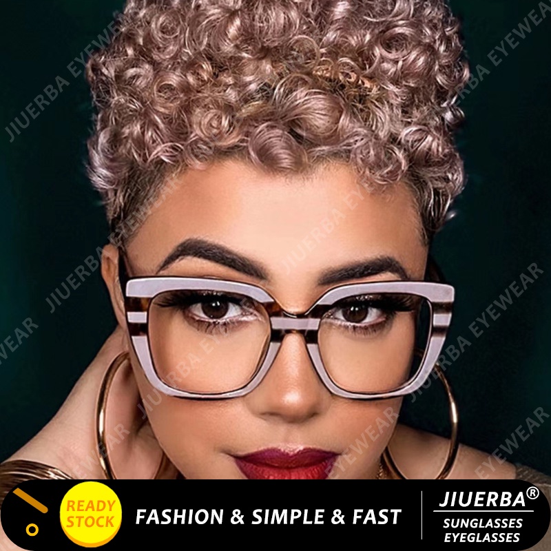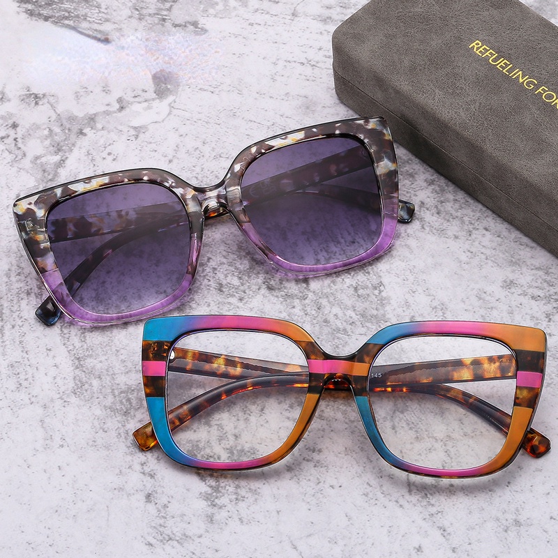 (JIUERBA) Lentes Substituíveis Óculos De Sol Com Lente Quadrada Anti-Luz Azul Leopardo Impressão Coloridos