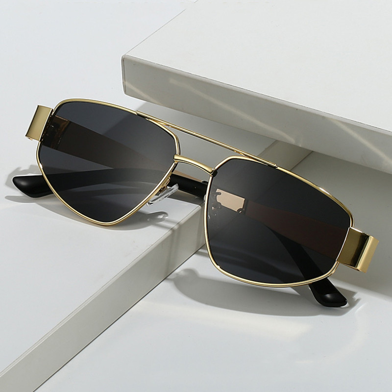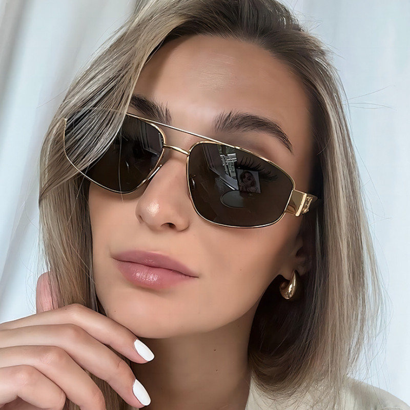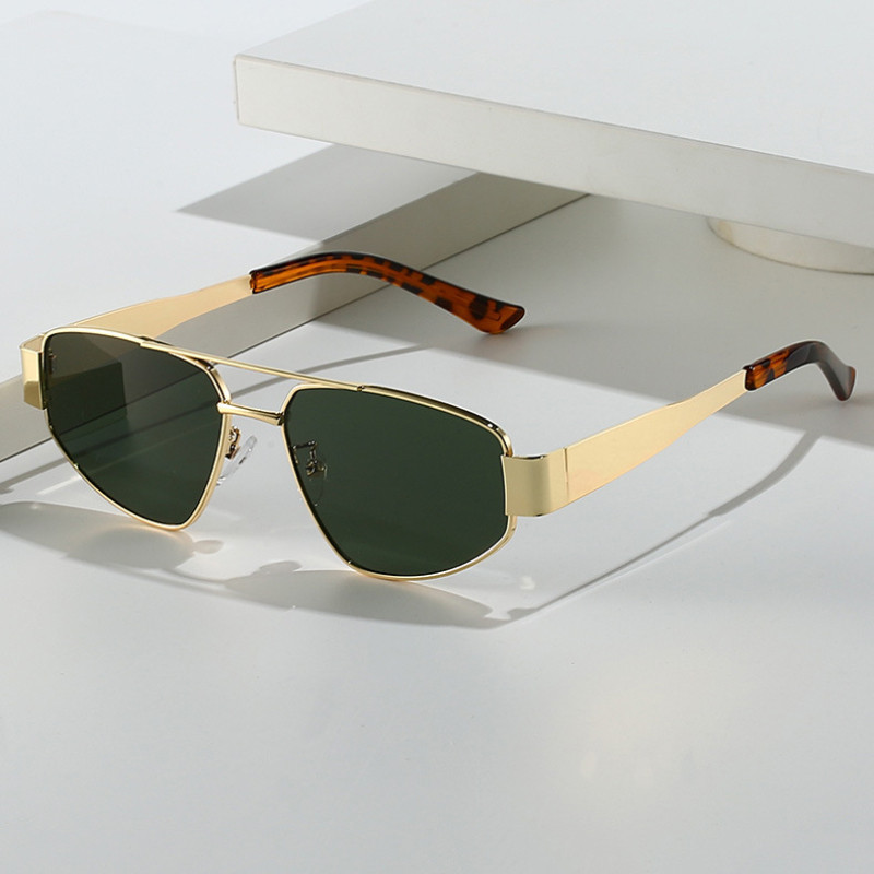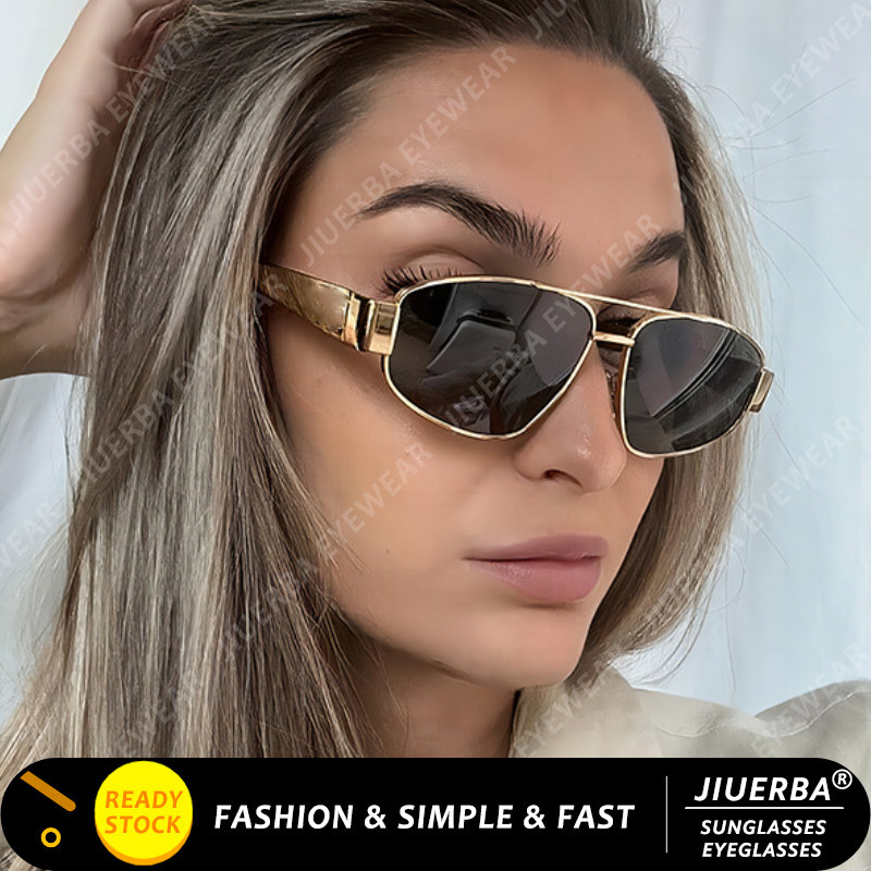 (JIUERBA) Óculos De Sol Retro Femininos De Duplo Feixe De Proteção UV Metálicos Para Homens