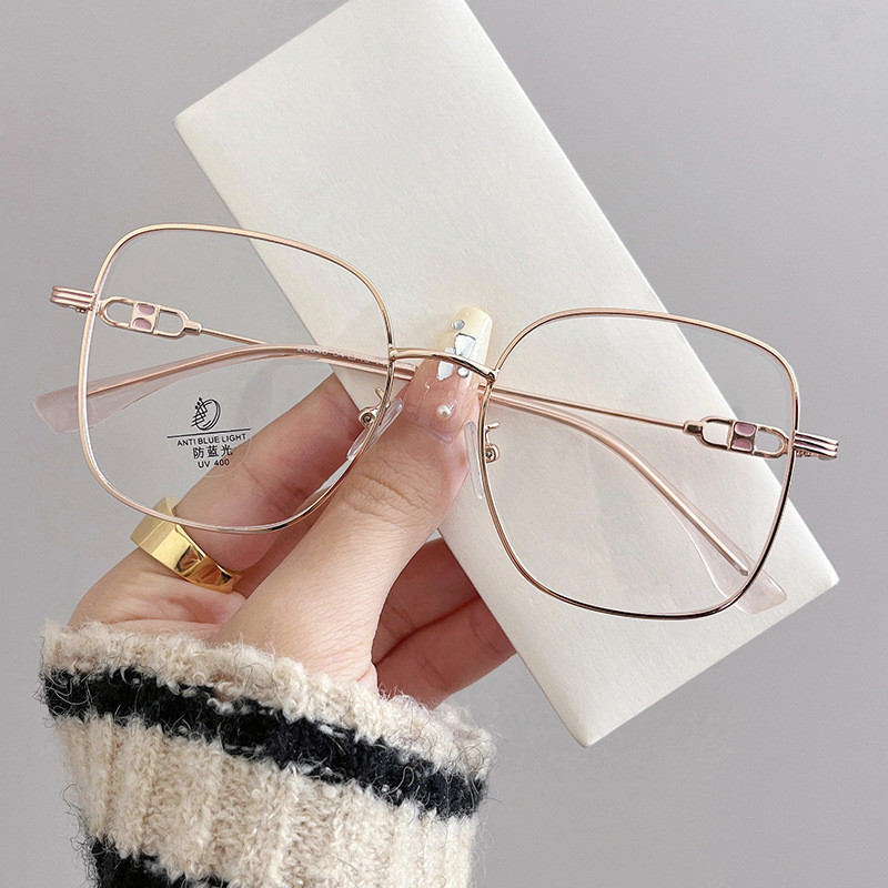 (JIUERBA) Moldura Quadrada Dourada Com Design De Modelo De Óculos De Moda Coreana Simples Anti-Azul