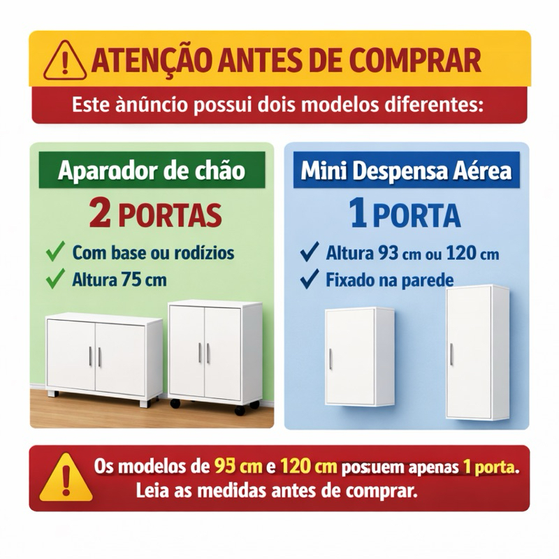 Armários Multiuso em MDF – Aparador 2 Portas ou Mini Despensa Aérea 1 Porta (ENVIO MONTADO)