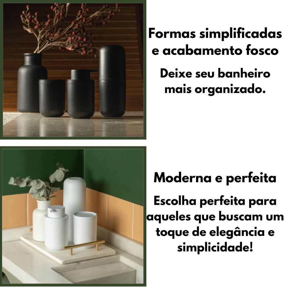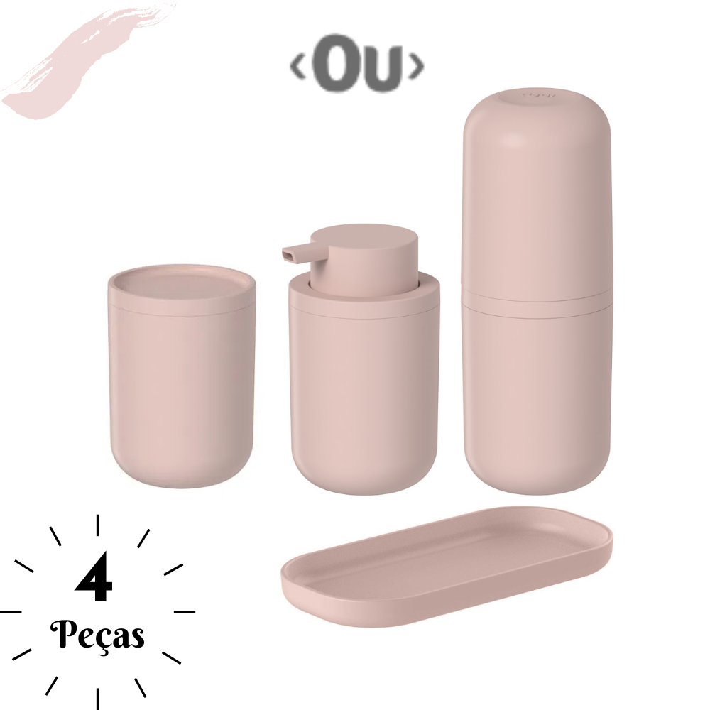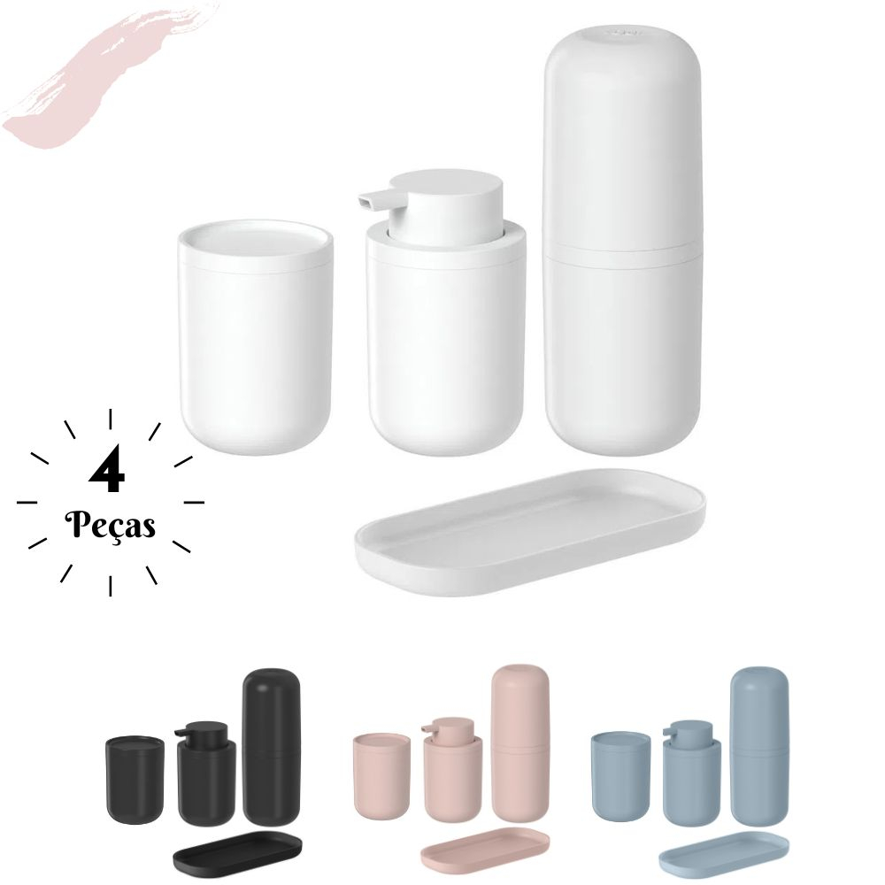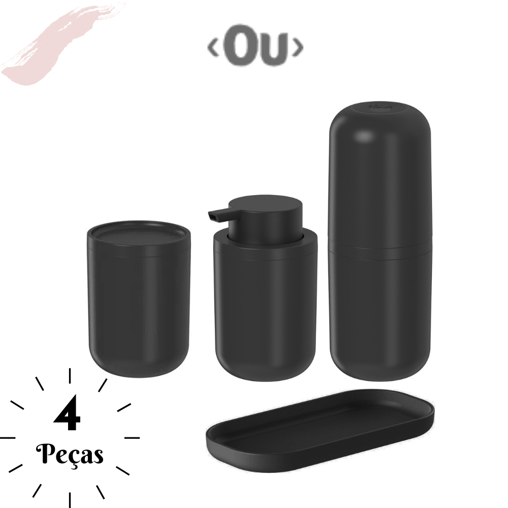Kit Banheiro 4 Pçs Bold Ou Composto por Porta Sabonete Líquido Porta Escovas Porta Algodão e Bandeja
