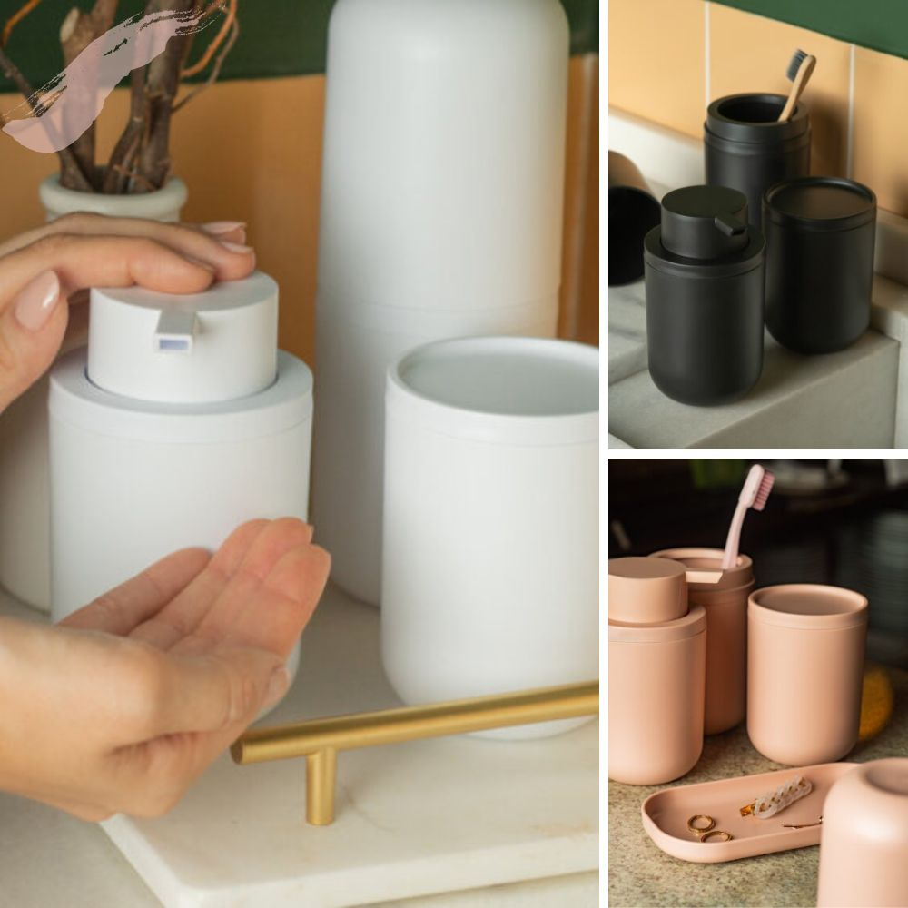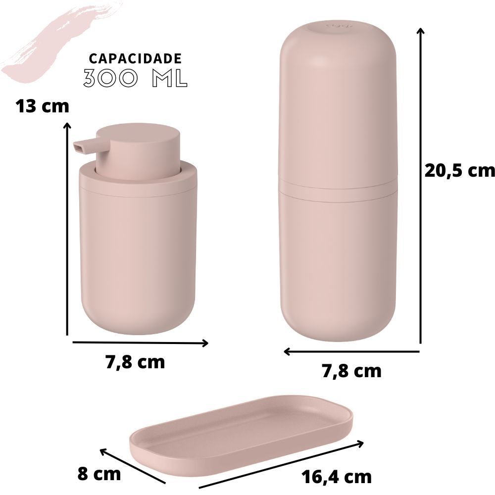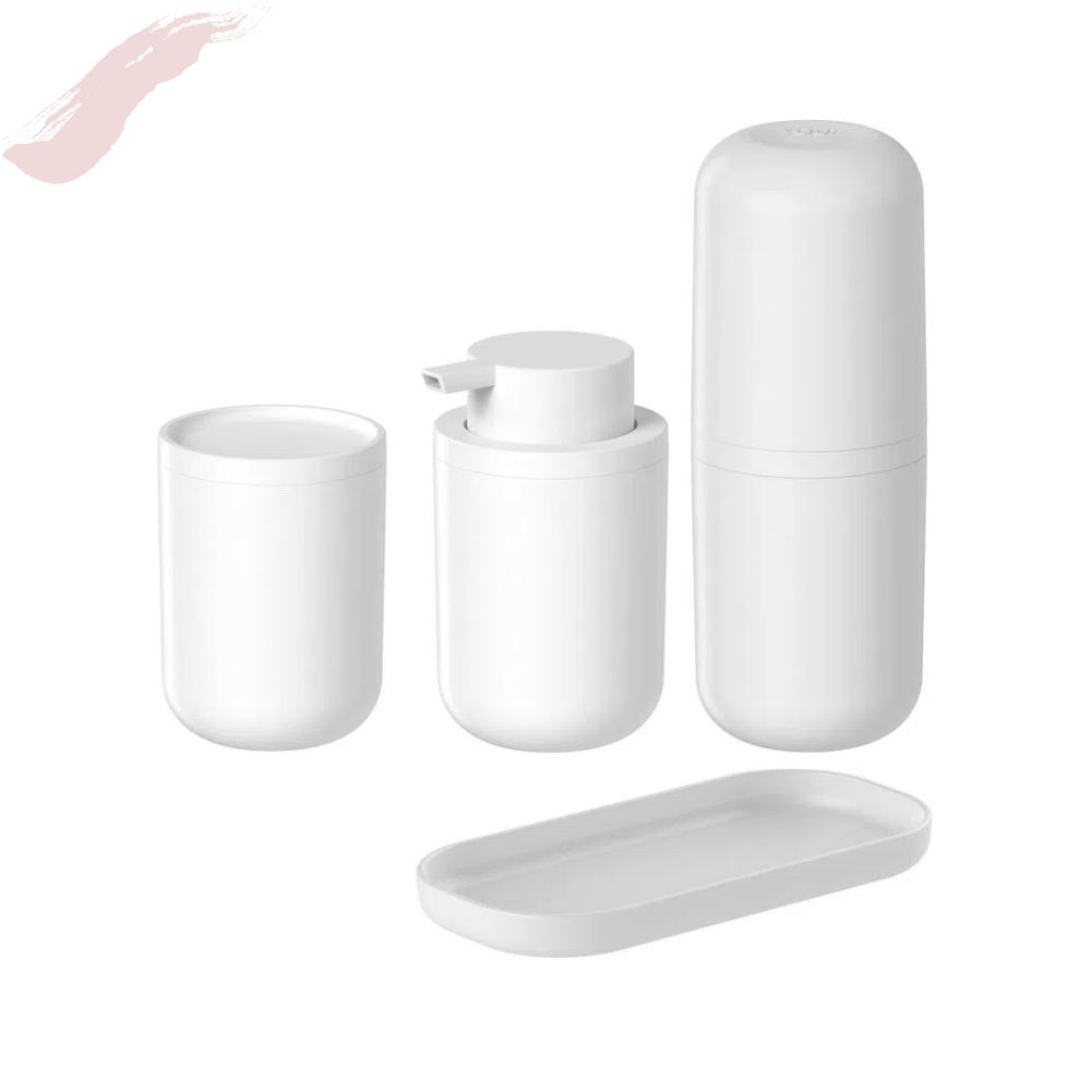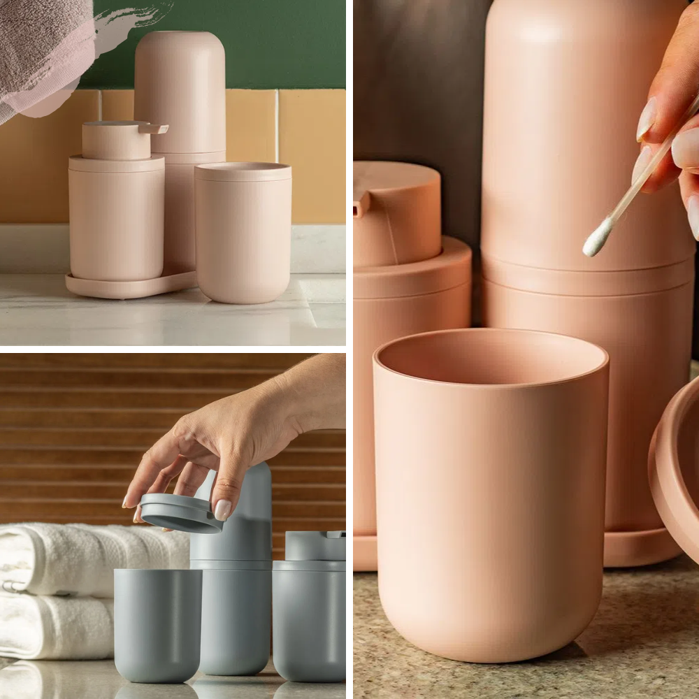 Kit Banheiro 4 Pçs Bold Ou Composto por Porta Sabonete Líquido Porta Escovas Porta Algodão e Bandeja