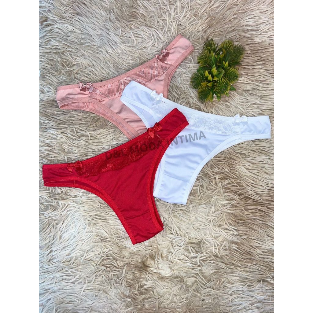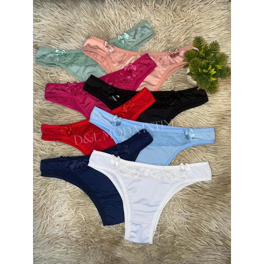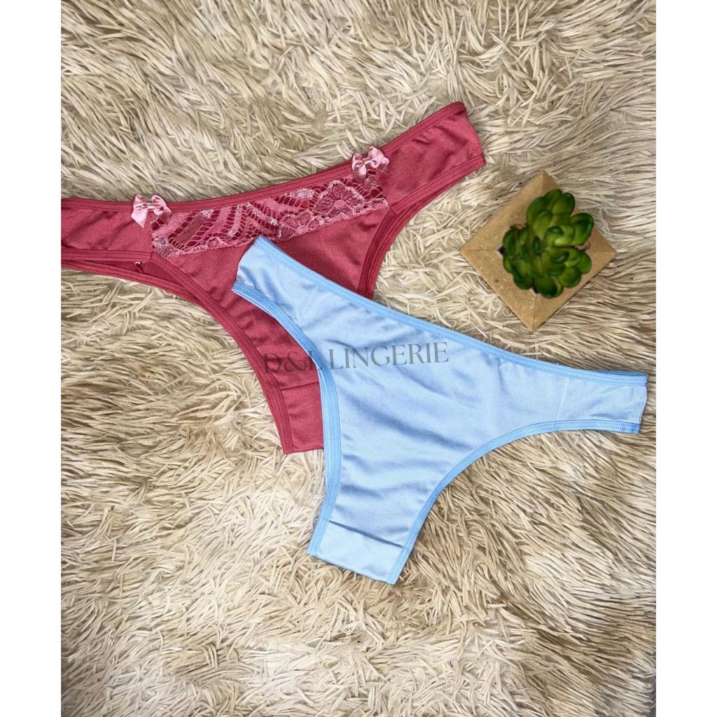 Kit 5 Calcinhas Tanga Conforto Microfibra com Renda Calcinha Feminina