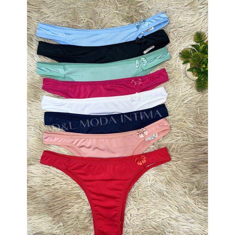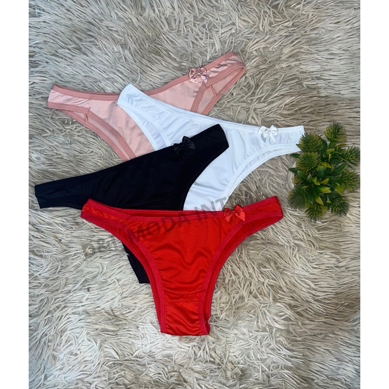 Kit 5 Calcinhas Tanga Conforto Microfibra com Laço Lingerie Calcinha Feminina