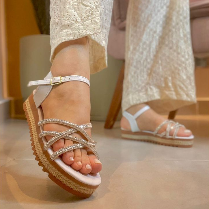 Sandalia Feminina Plataforma Strass Confortável Promocao Modinha