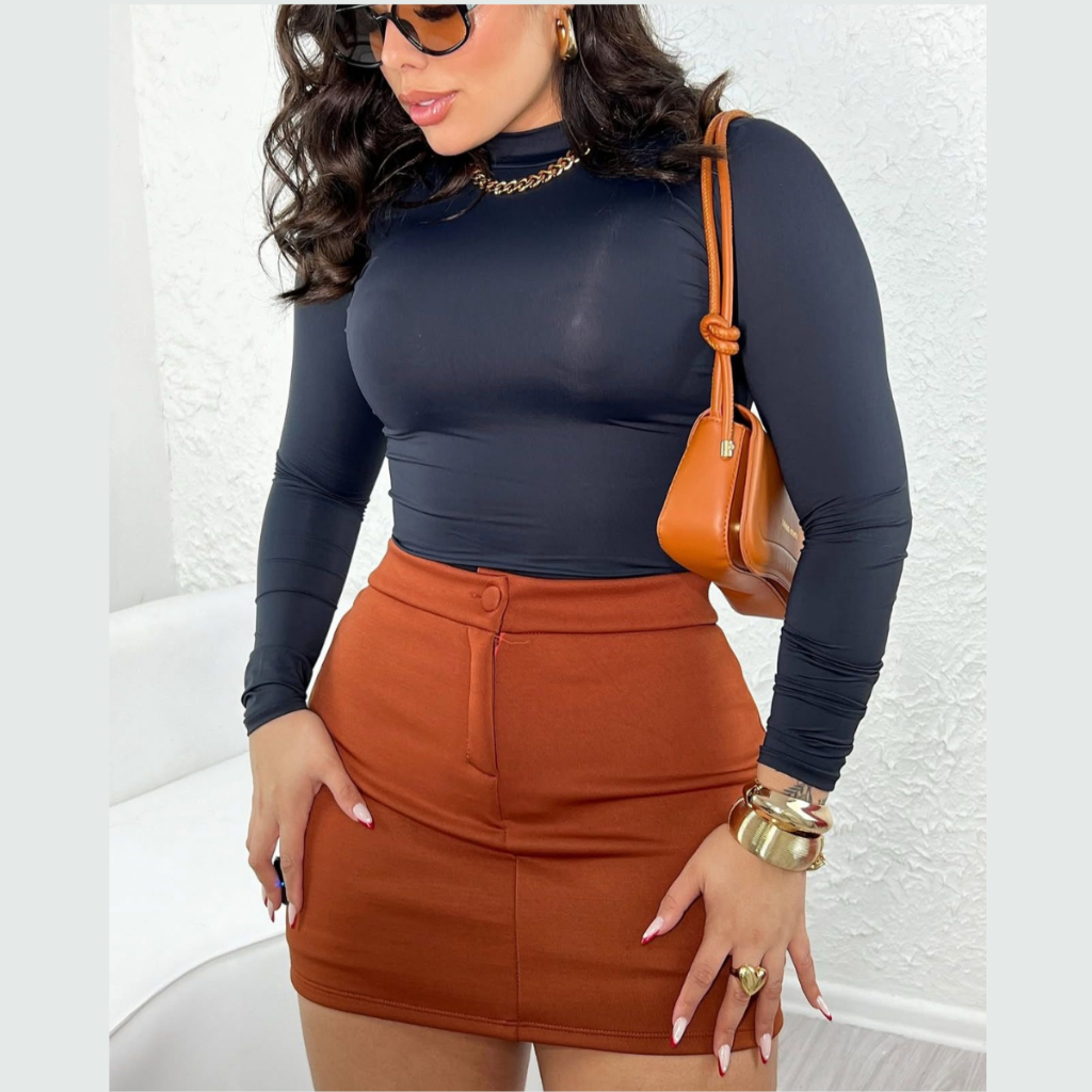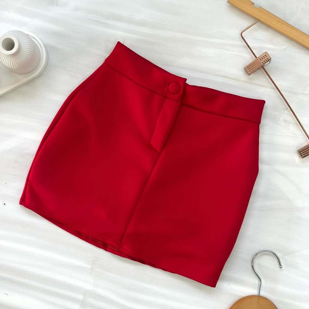Short Saia Feminino em Neoprene Cintura Alta Botão Encapado Não Marca, Confortável e Estiloso