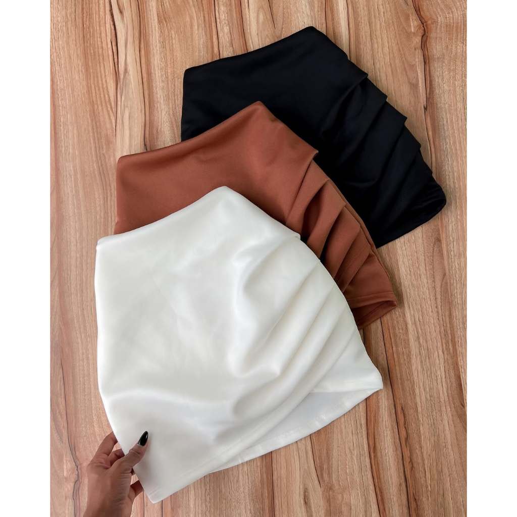 Short Saia Feminino Drapeado Cintura Alta e Caimento Perfeito Para o Dia a Dia Elegante