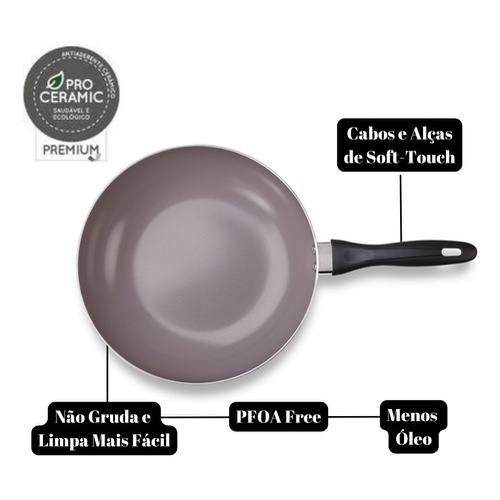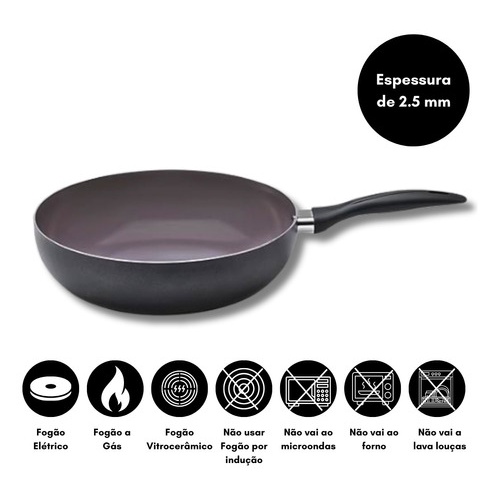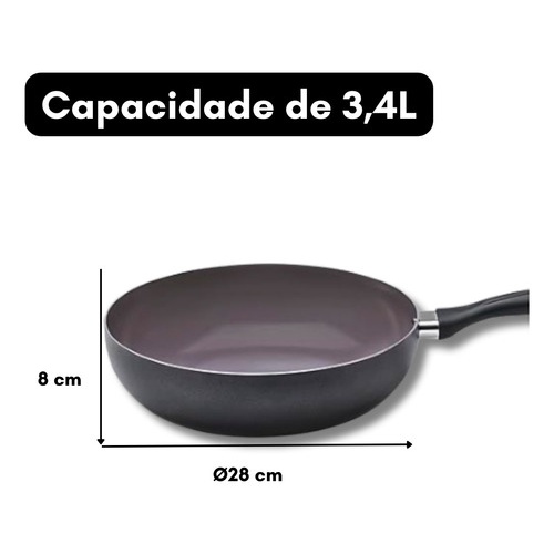 Wok Frigideira Panela Antiaderente 28cm Cerâmica 3.4l - Brinox