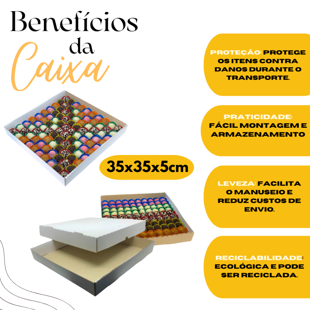 Embalagem Doce E Salgado Caixa Tamanho 35x35x5cm 30 Unidades