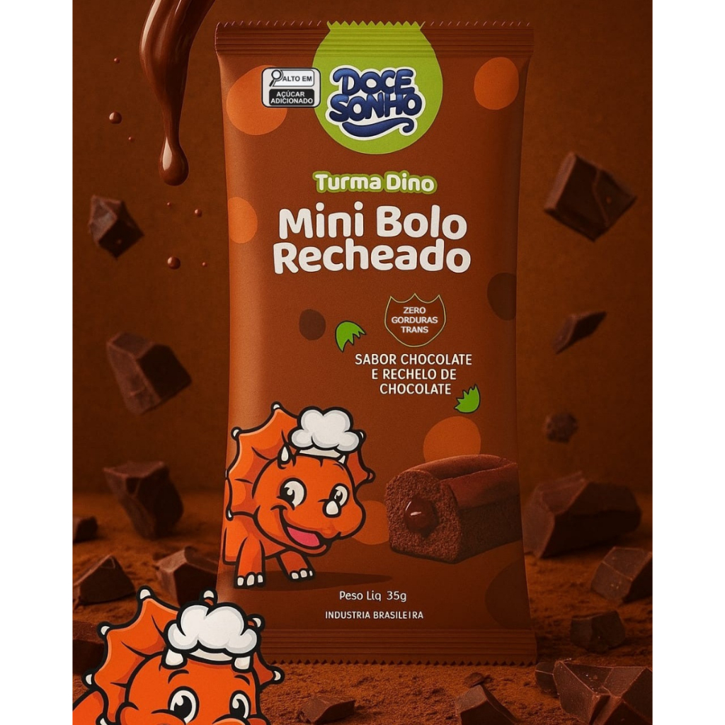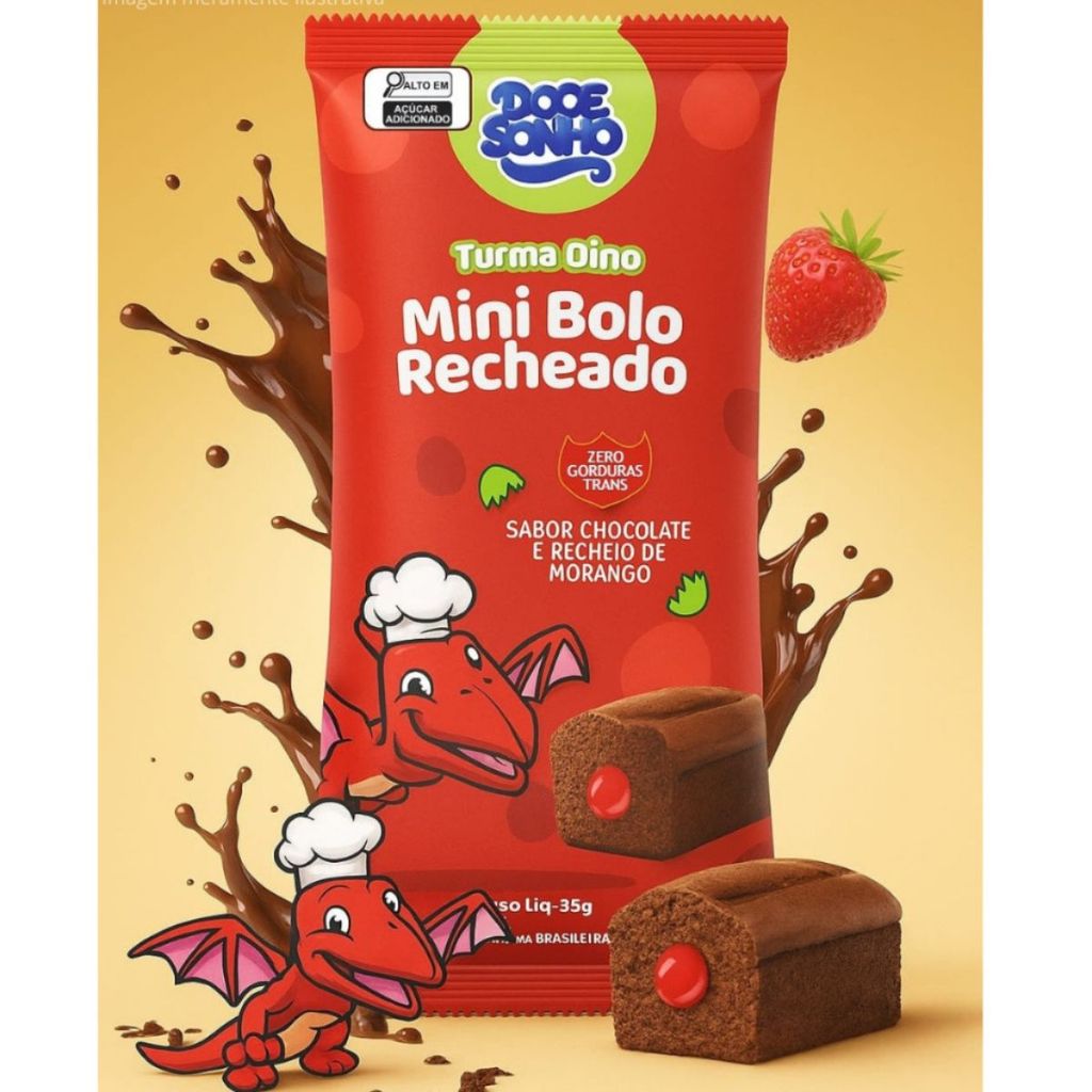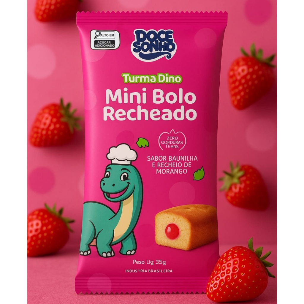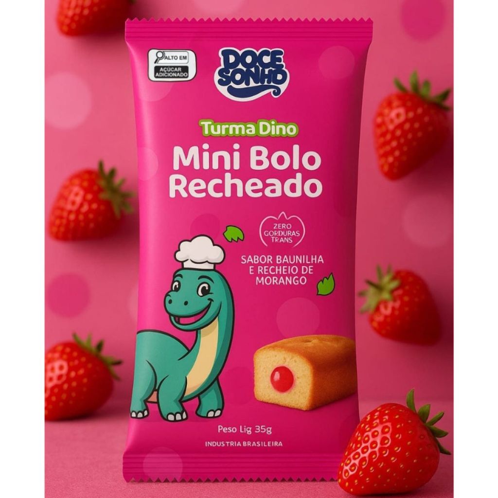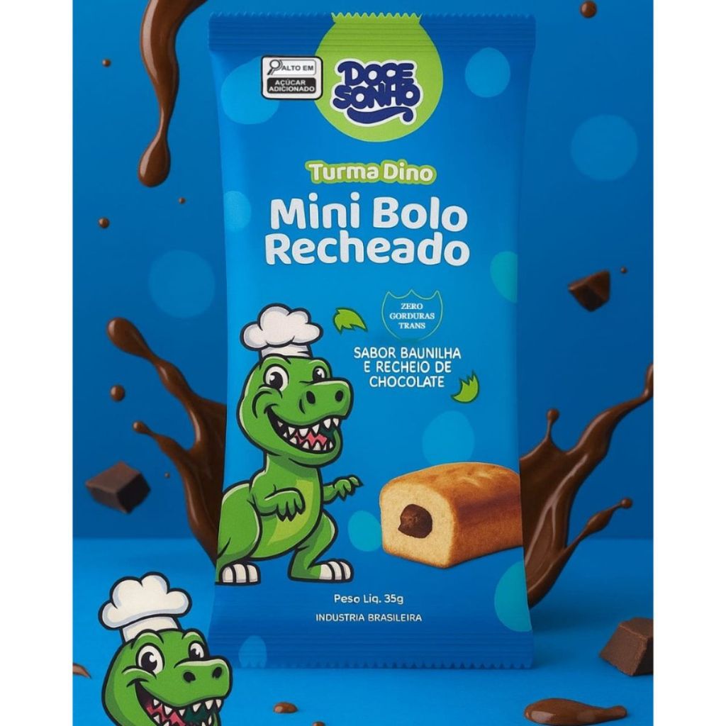 Kit 4 Caixa Bolinho Recheado Doce Mini Merenda Bolo Criança Escola Dia Dia Kids Turma Dino Recreio