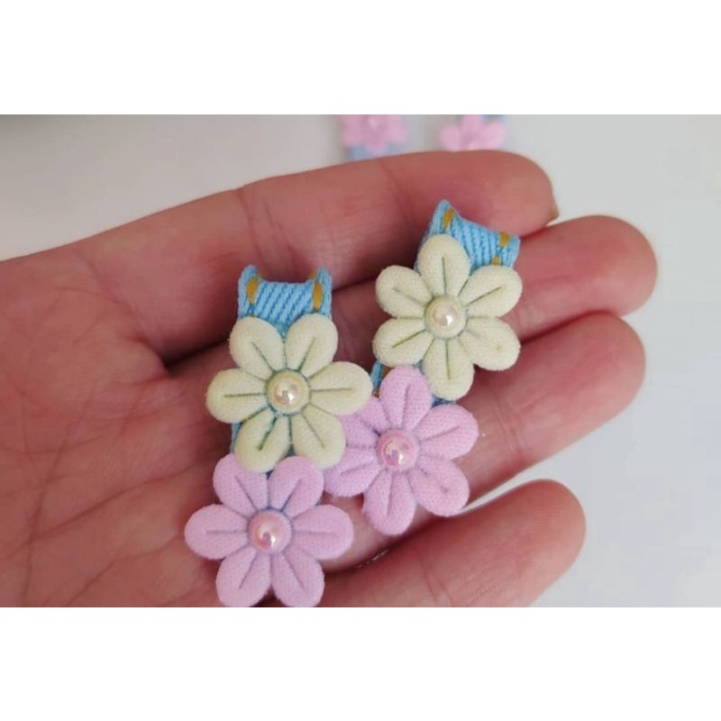 Laço parzinho florzinha no bico pato mini fita jeans.