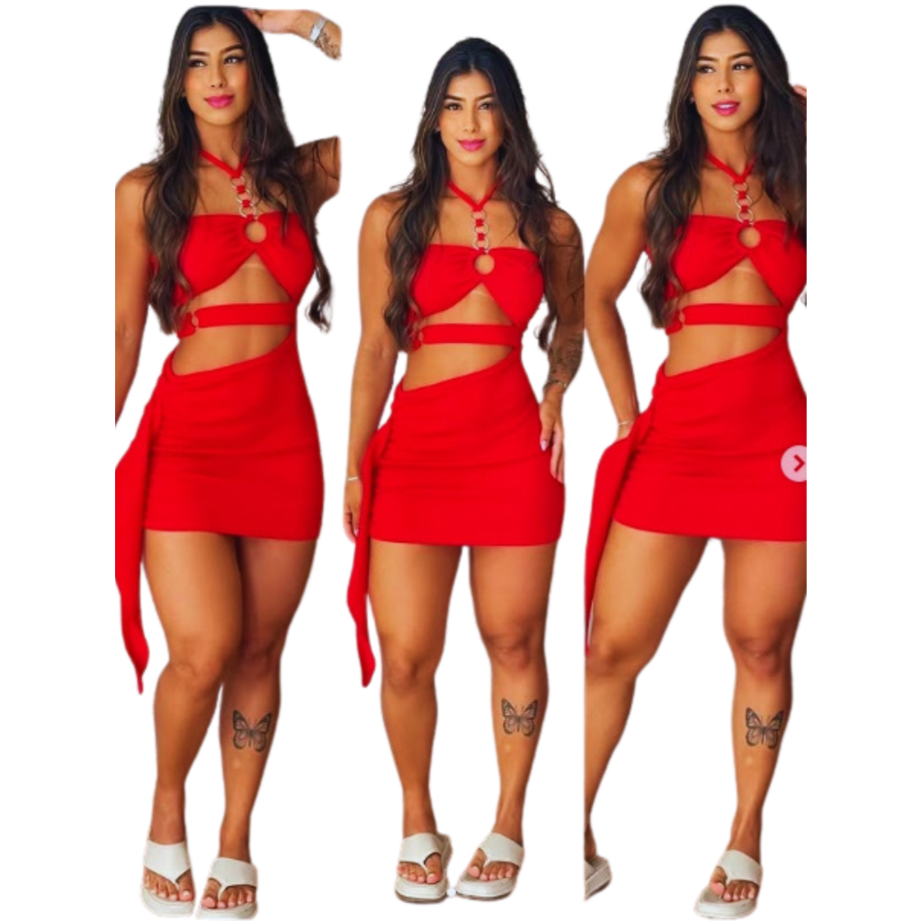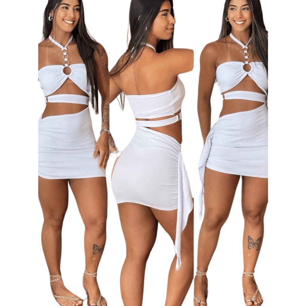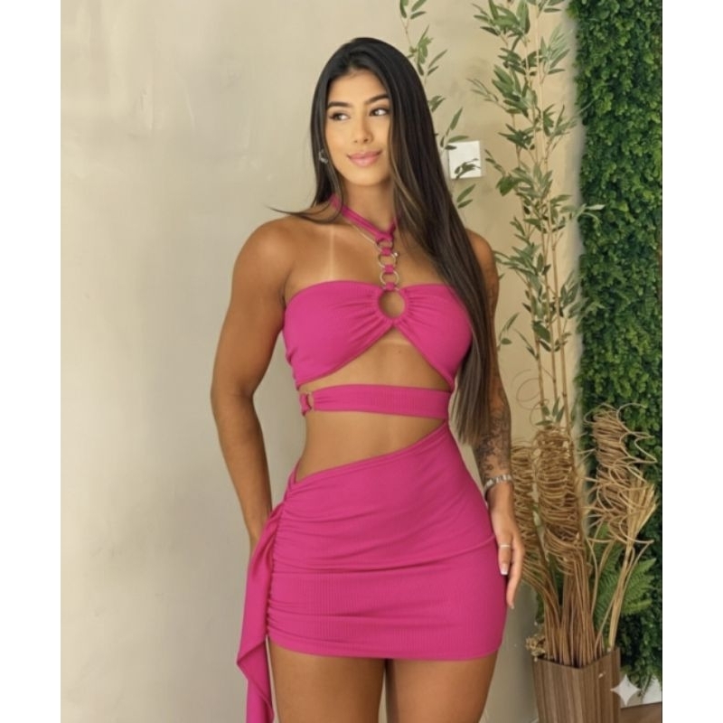 Vestido Três Argolas Com Saia e Croppd. Moda Gringa. Moda Balada.